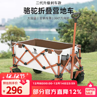 CAMEL露营车营地车折叠购物车坦克轮买菜车家用拉货取快递野营遛娃遛狗 平折收纳, 140L ,米白/驼色 P102A