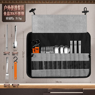 岛奇户外餐具收纳包露营野炊便携式打卷3人组合304不锈钢勺子叉子 【十一件套】户外手包便携餐具
