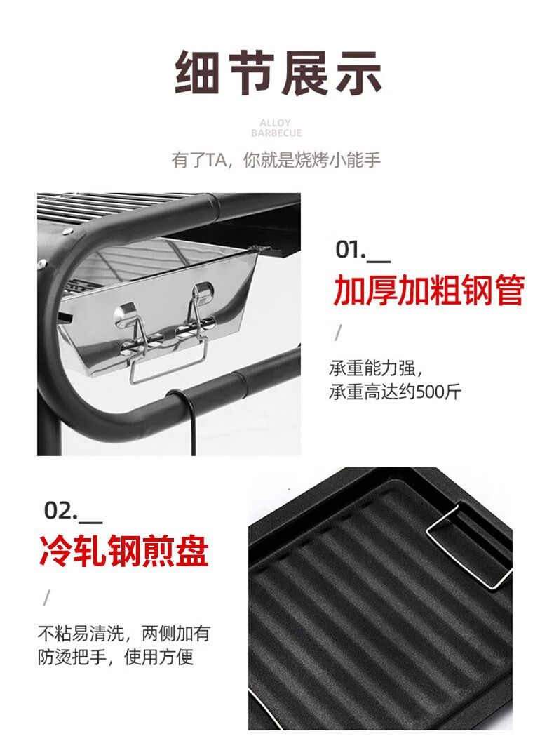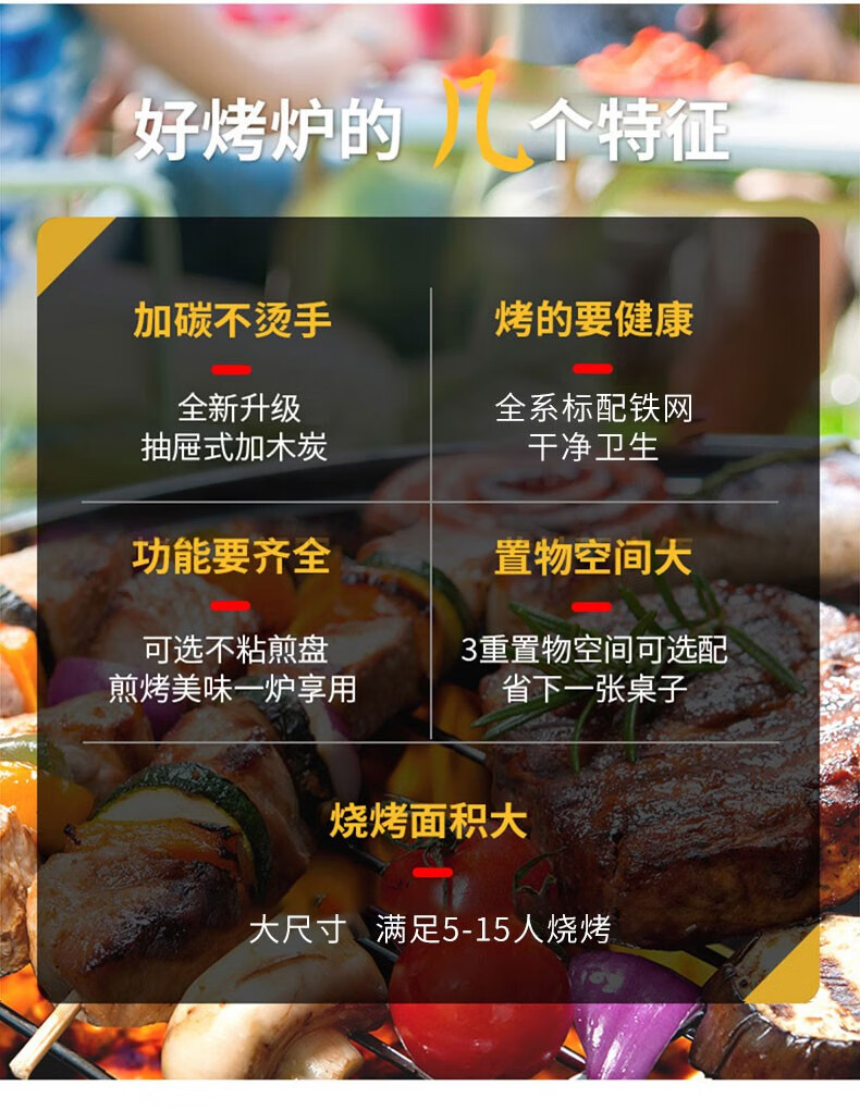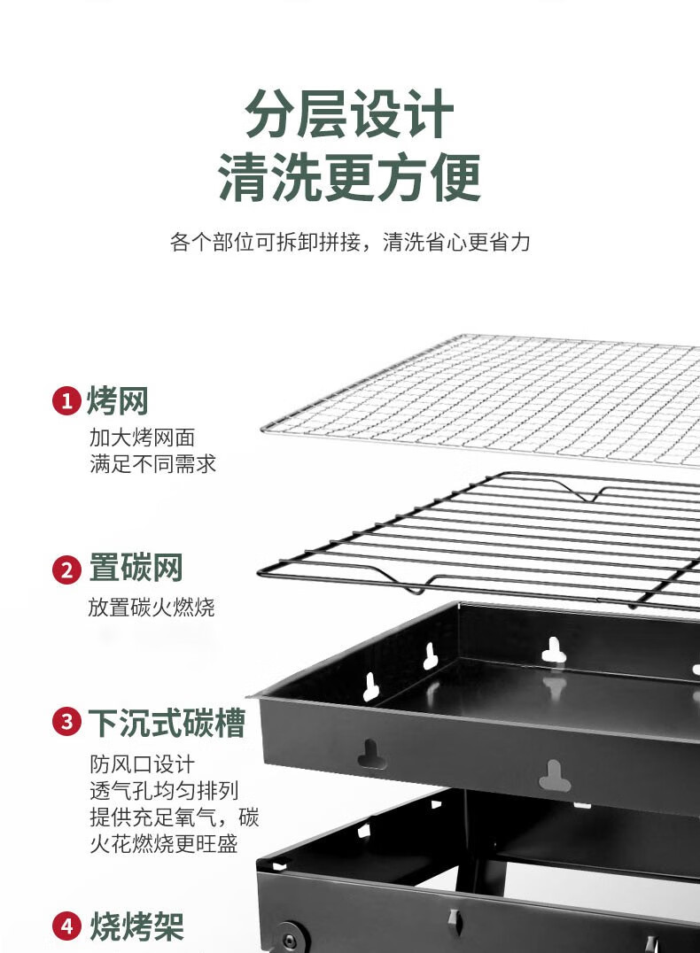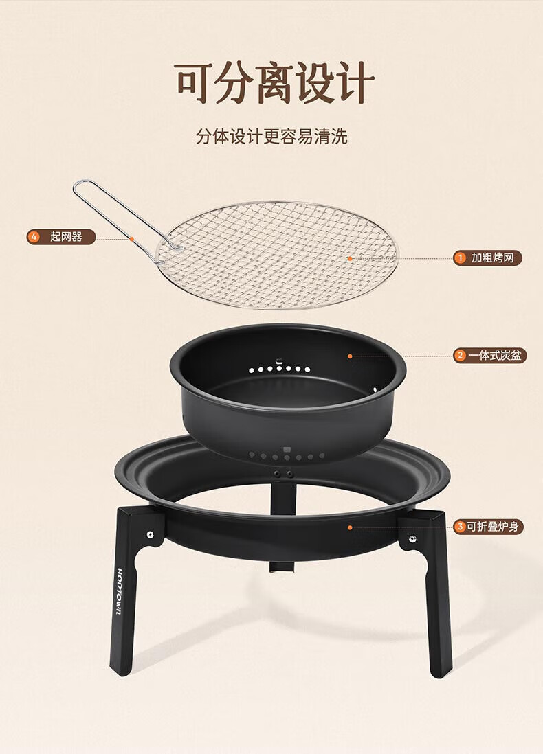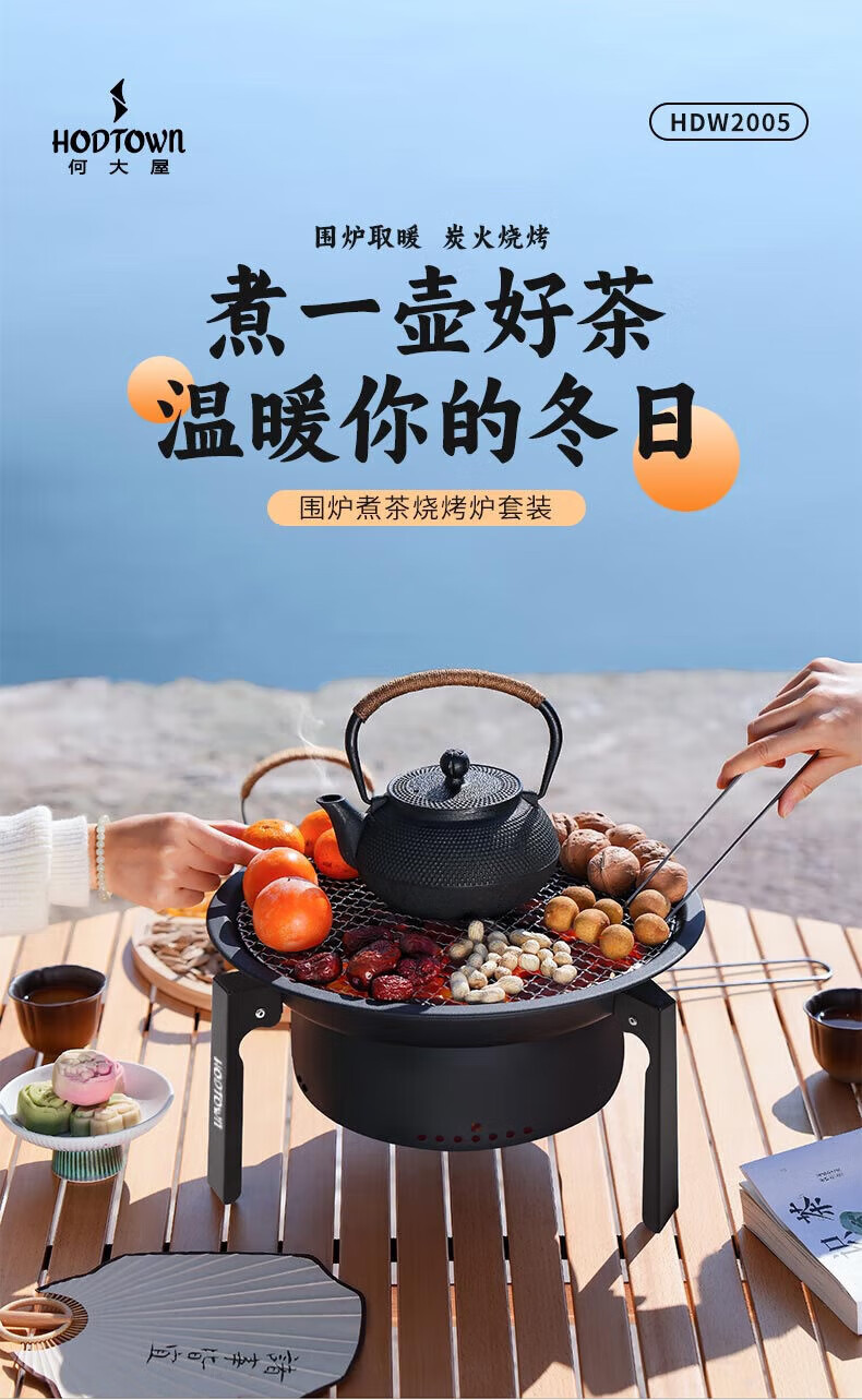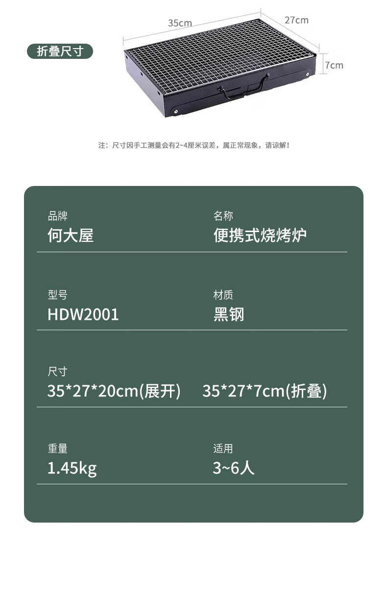 何大屋(Hodtown)烧烤炉户外便携烧烤架家用烧烤炉子野外露营烤肉炉 卡片式便携烧烤炉 HDW2008
