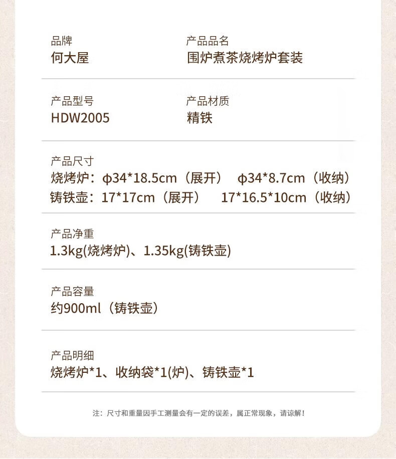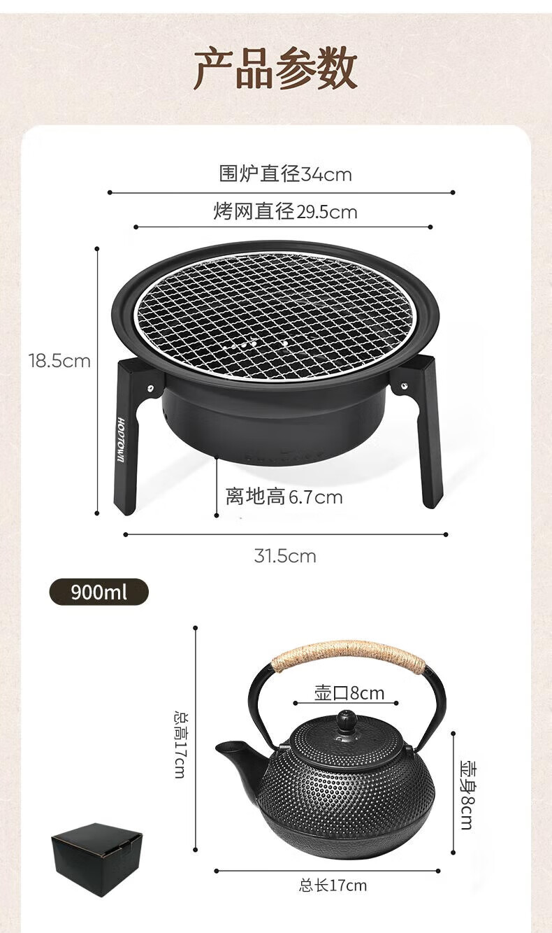 何大屋(Hodtown)烧烤炉户外烧烤架木炭碳烤炉家用便携式烤炉烤肉架HDW2001超轻儿 便携式烧烤炉
