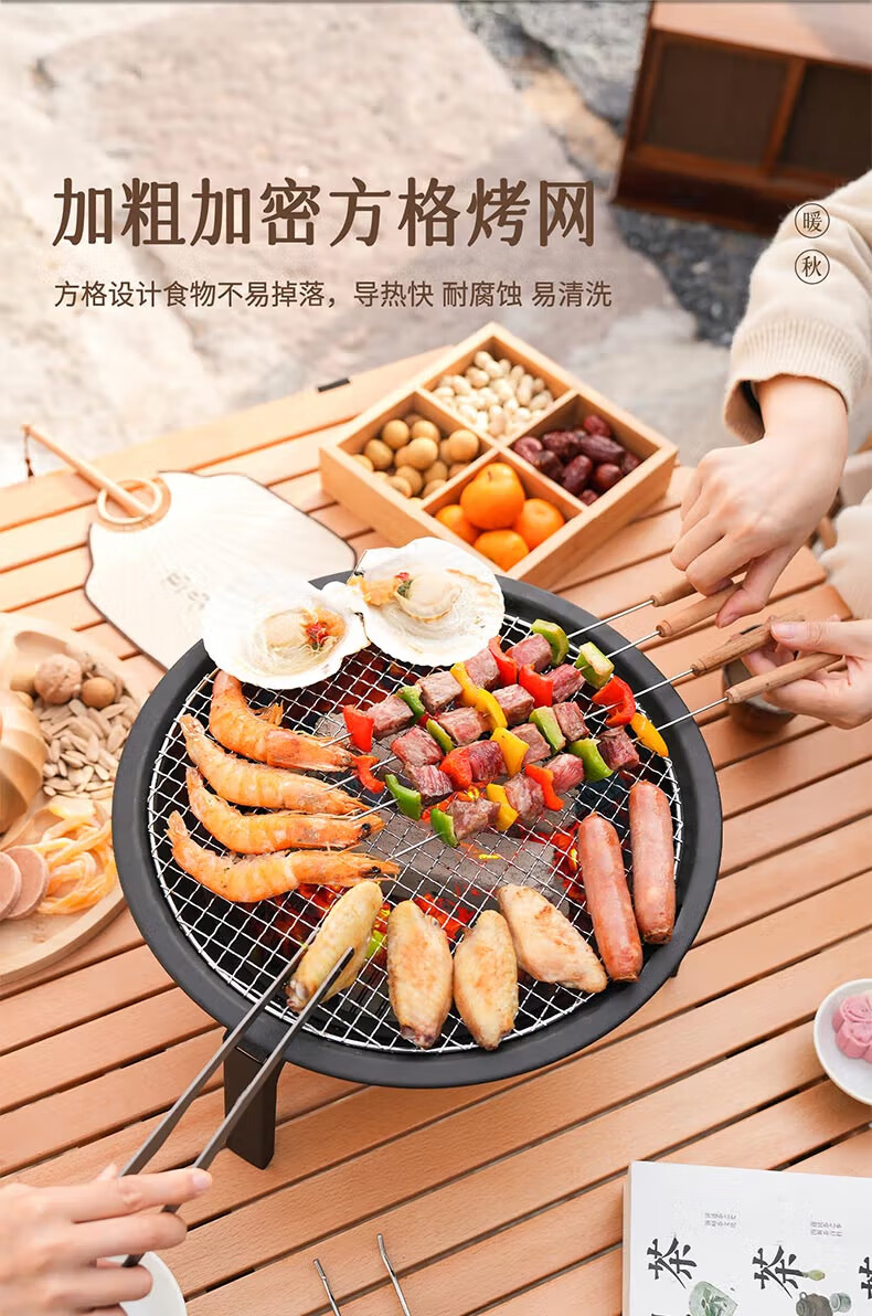 骆驼(CAMEL)JEANS围炉煮茶炉全套烤火炉火盆烧烤架桌户外炭炉家用室内 【喜喜】木纹色围炉桌_稳固加粗