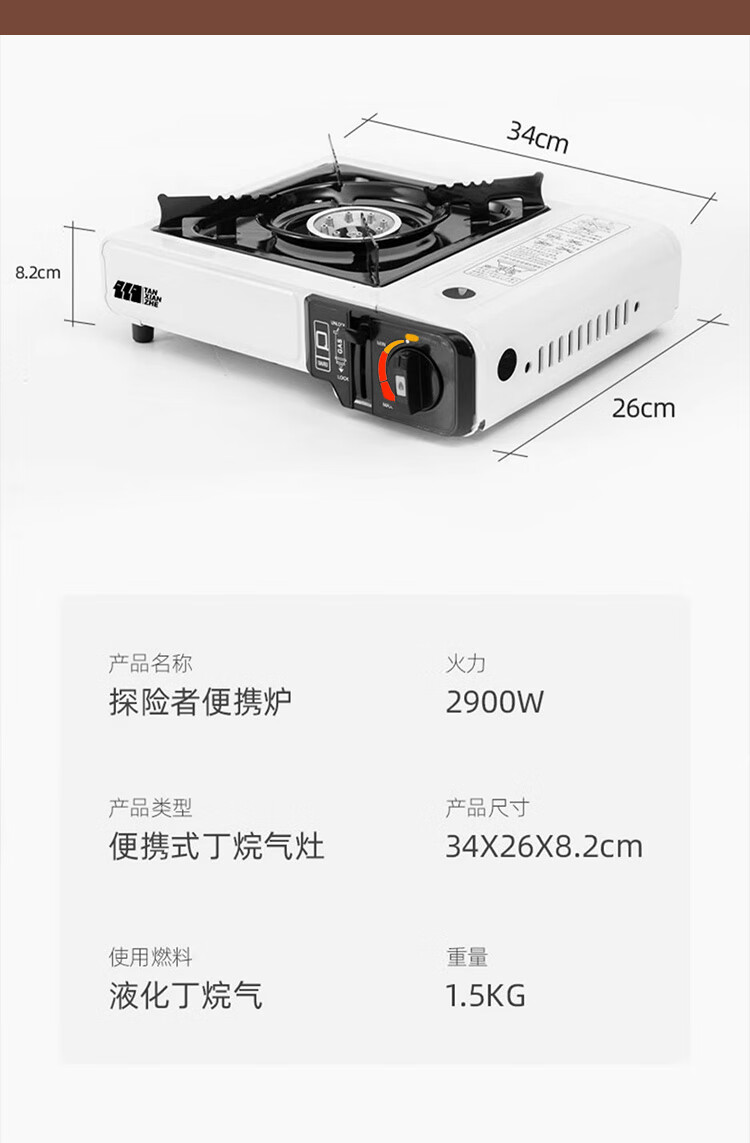 探险者户外卡式炉便携式防风炉具烤盘炊具露营家用野外火锅瓦斯炉燃气灶 【2900W】白色卡式炉单炉