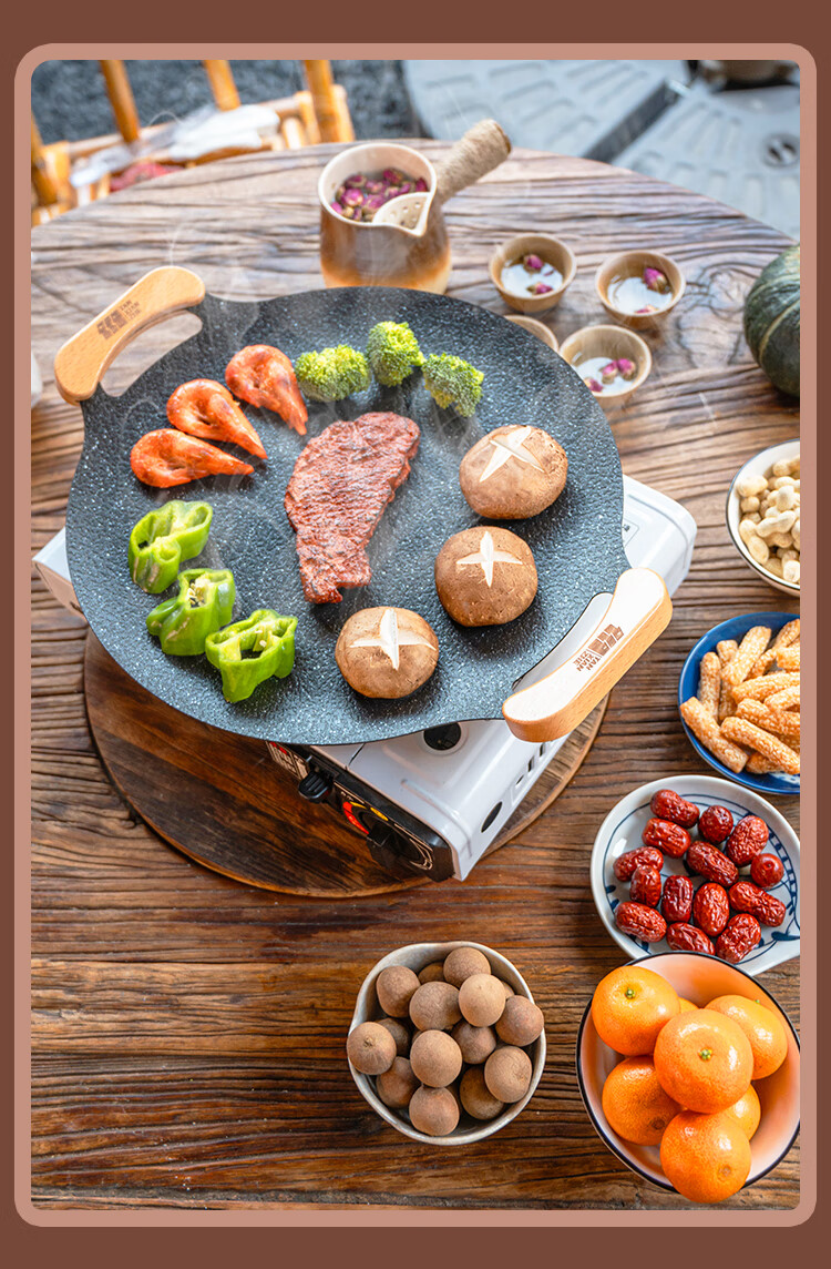 探险者(TAN XIAN ZHE)户外烤盘卡式炉户外炉具烤肉烤盘套装露营炉具装备全套 双用款-30CM木把手+牛津包