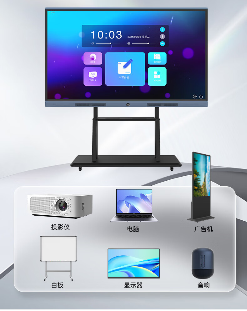 视乐星教学一体机电子白板会议平板触屏培训电脑安卓无线投屏显示器智慧黑板 85LCD触摸屏+移动推车 【教学会议切换】双系统i7/256G+安卓32G