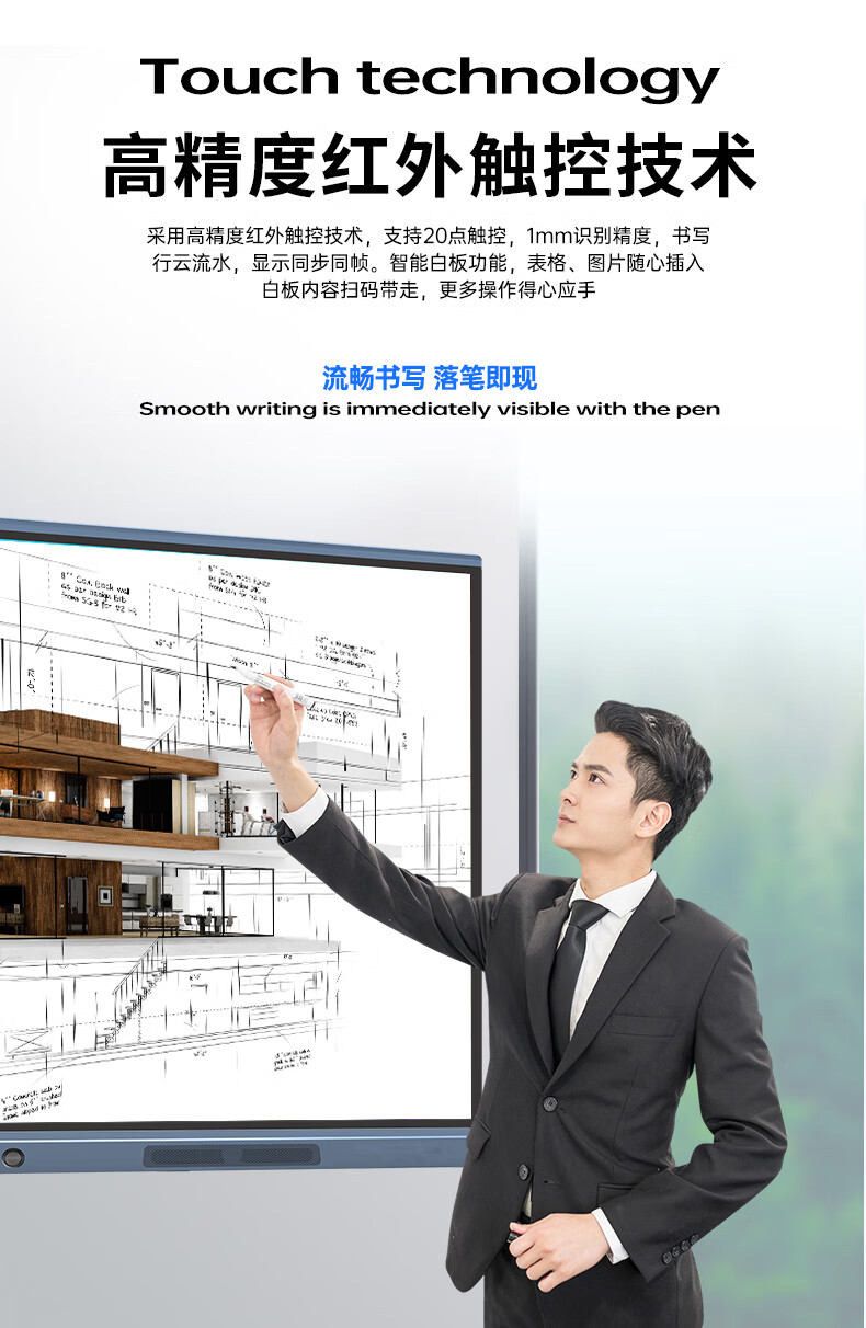 会议一体机教学家用多媒体触控屏电子白板智能投屏办公4K超清智慧屏教学触摸一体机55/65/75/85/100英寸 75LED触摸一体机+移动推车+运费险+包安装 单系统W10【i5/8+256G】教学