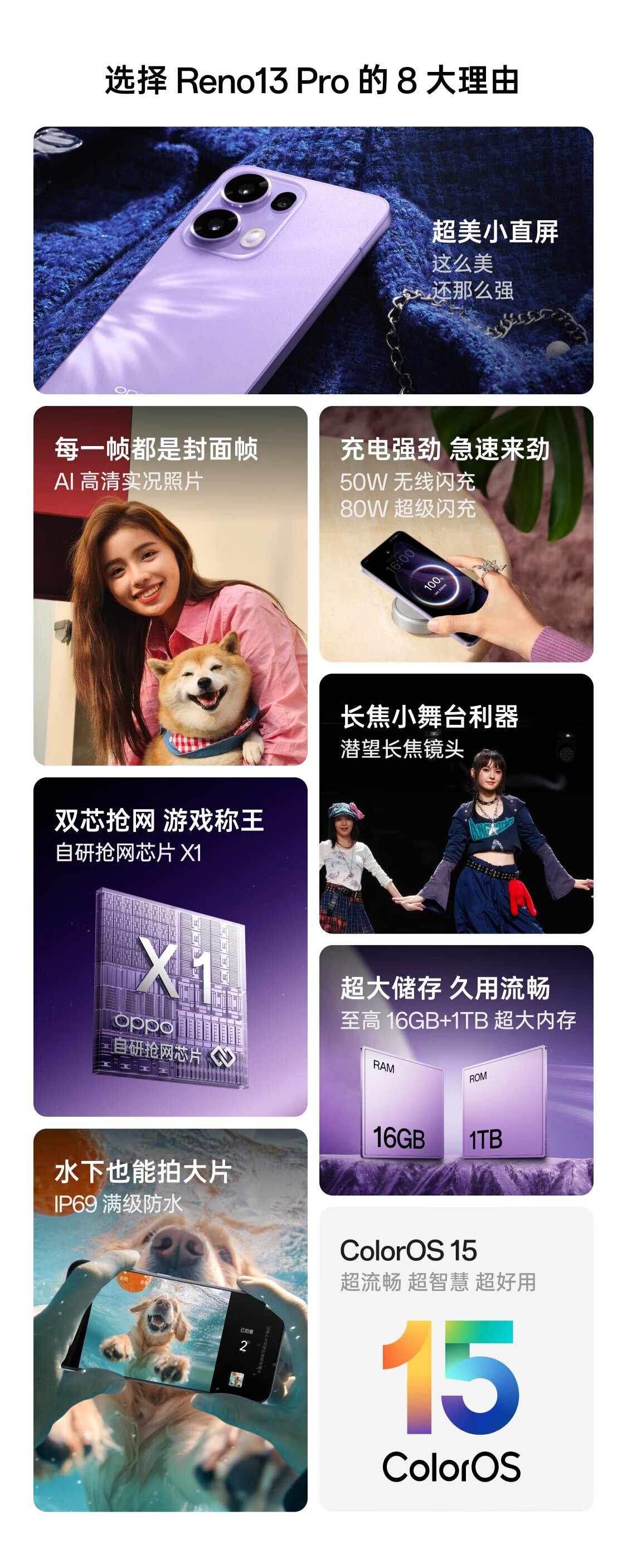 OPPO Reno13 Pro / Reno13 超美小直屏 AI 实况照片 IP69满级防水 双芯抢网 5G拍照手机 OPPOReno13Pro Reno13Pro丨星光粉 12GB+512GB