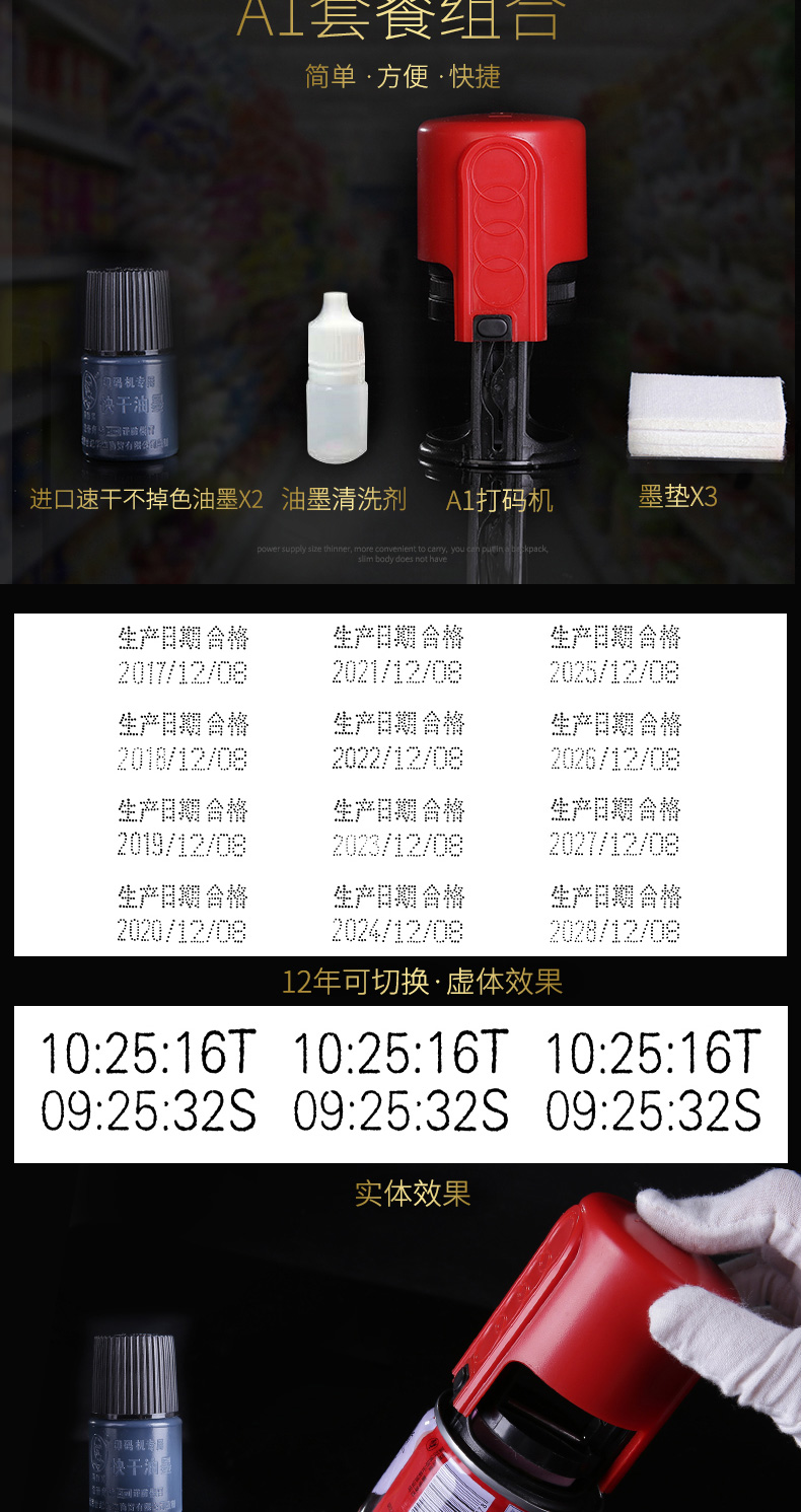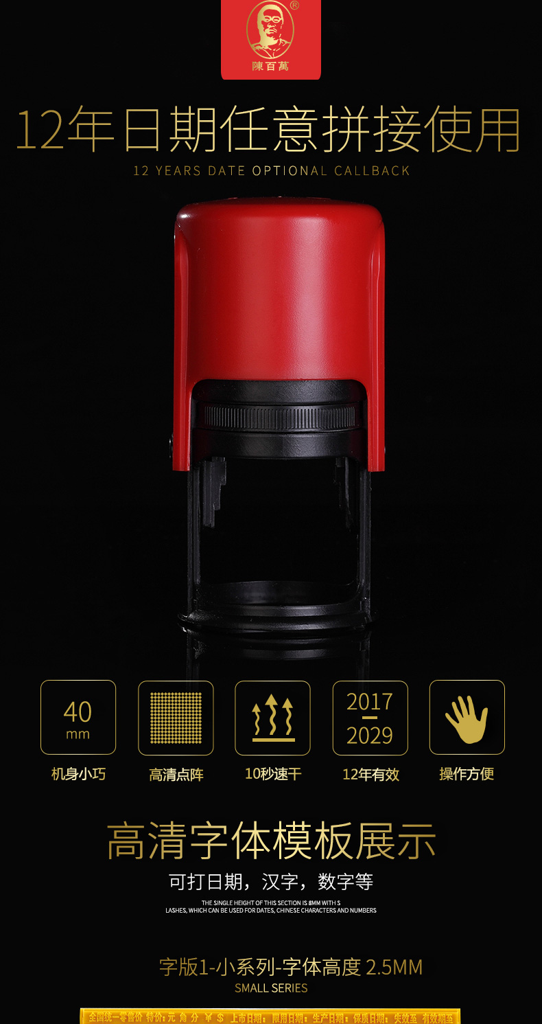 陳百萬陈百万打码机服装吊牌瓶盖价格号码管保质期手动打码机印码机打生产日期印章食品包装日期打码器A3 官方标配