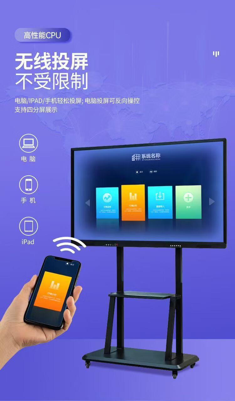 会议一体机视频会议平板多媒体教学一体机触摸屏电脑智能互动电子白板 会议触控大屏100寸 86寸会议一体机 安卓系统+推车