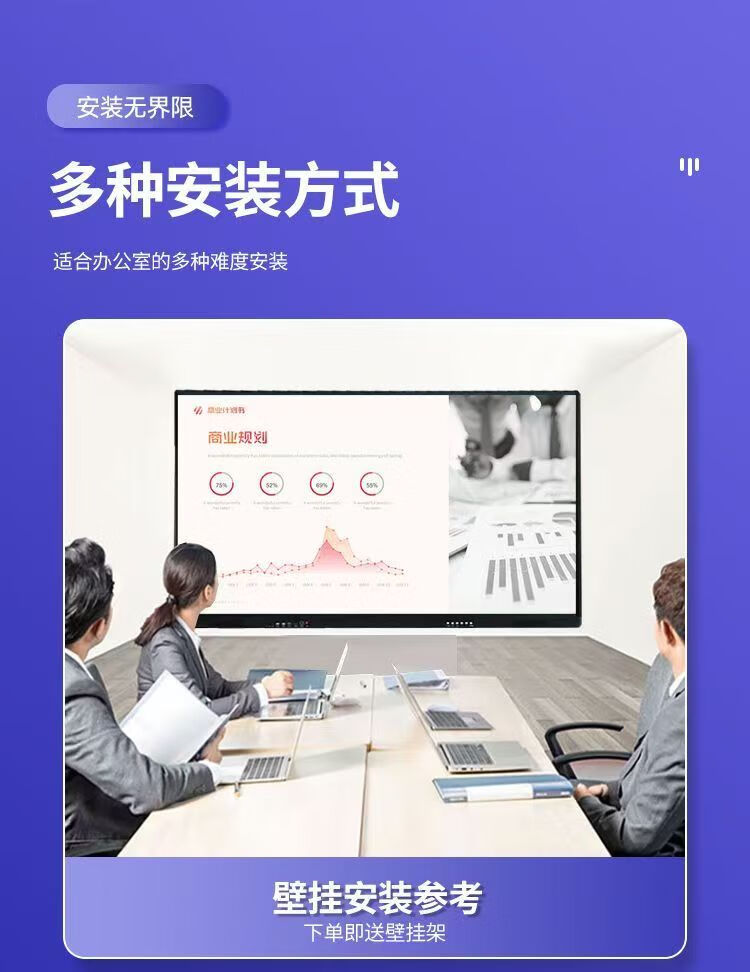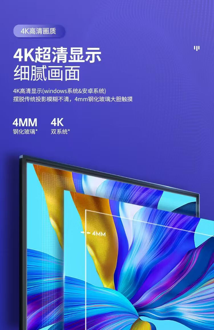 小米(MI)4K会议教学触摸一体机多媒体平板55 65 75 85 100 110寸电子白板 100寸I7/8+256G双系统防爆屏幕