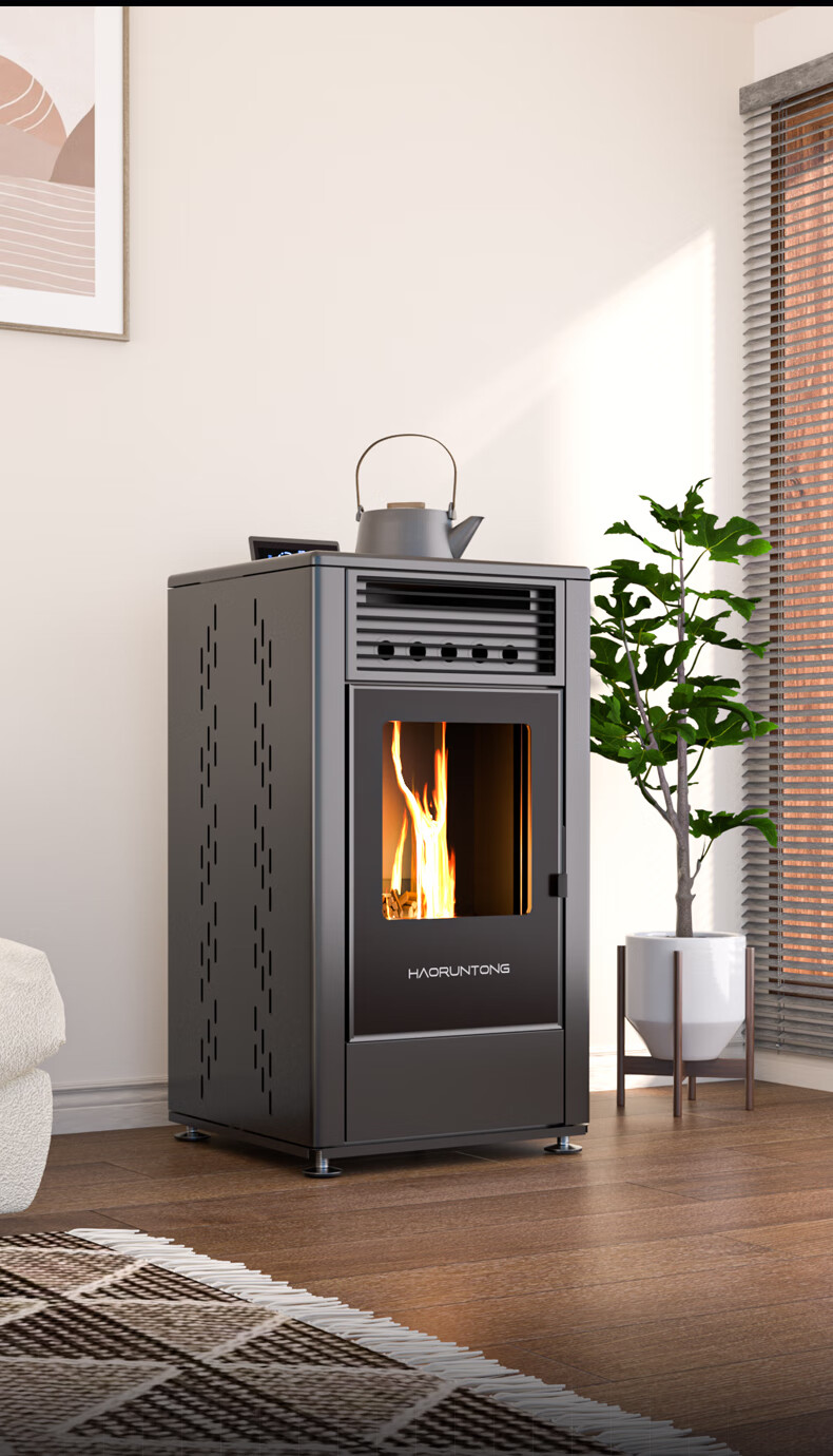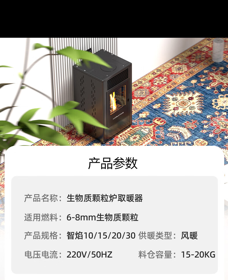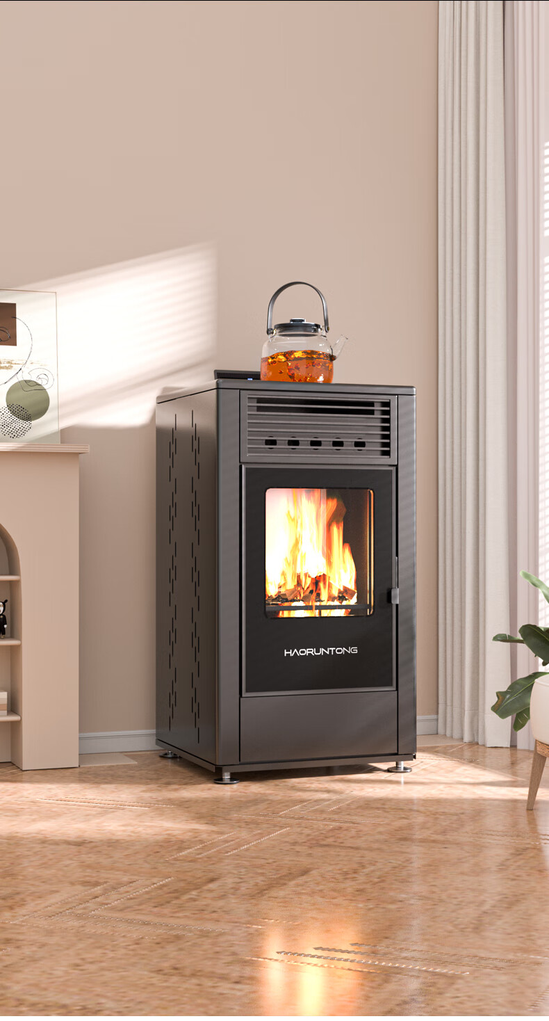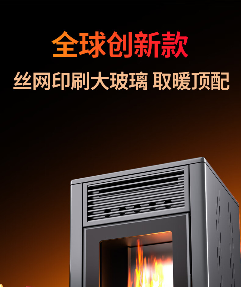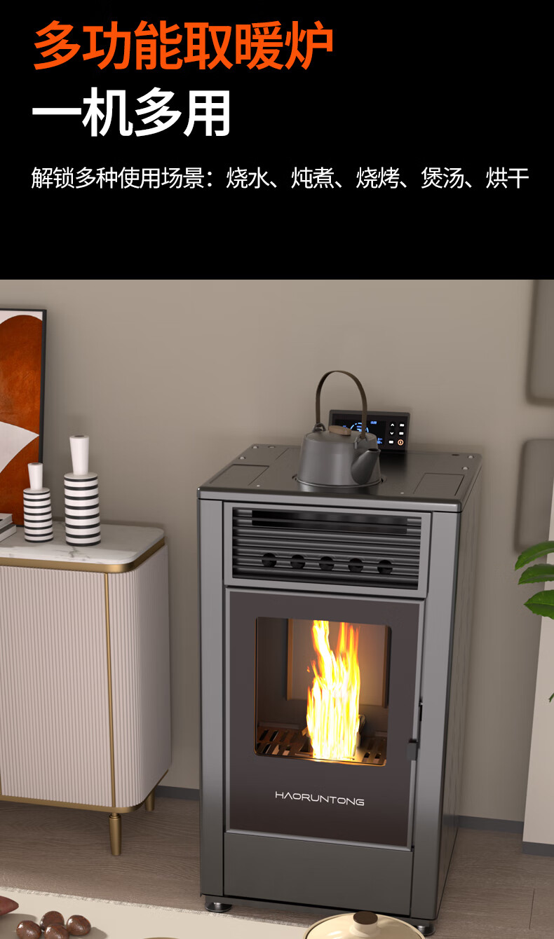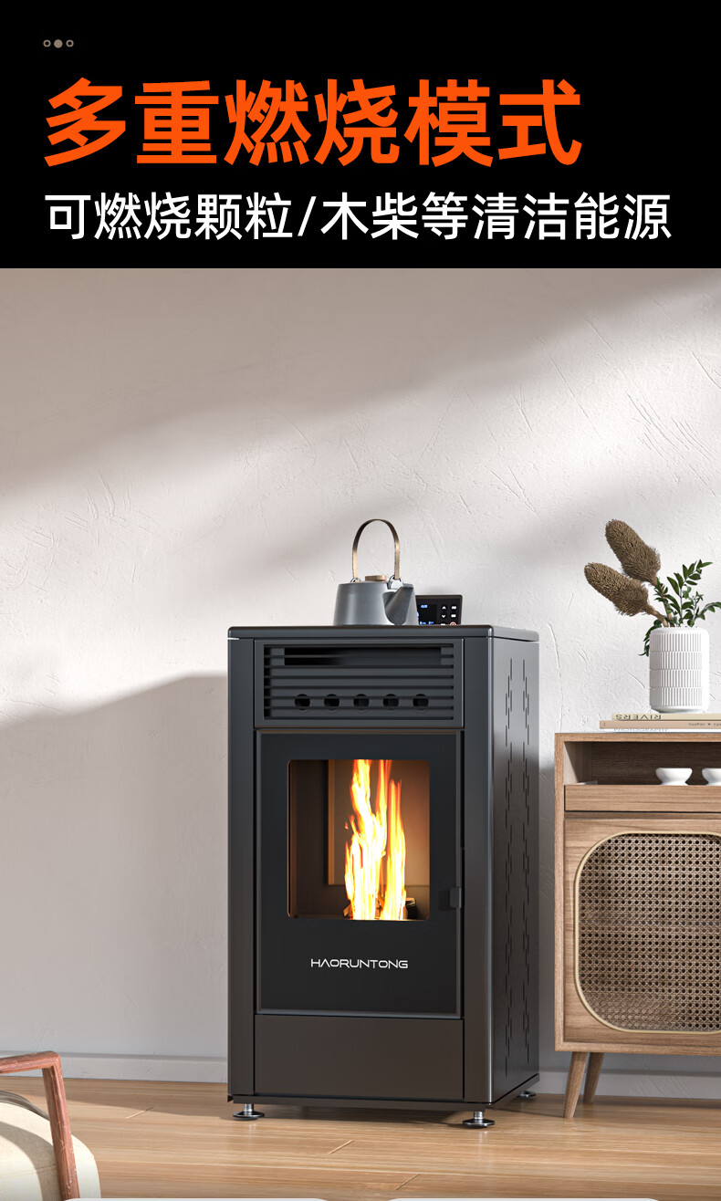 昊润通生物质颗粒取暖炉家用室内办公室别墅民宿商用无烟采暖柴火炉包邮 烧水款智焰30颗粒木柴两用