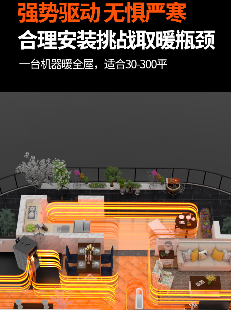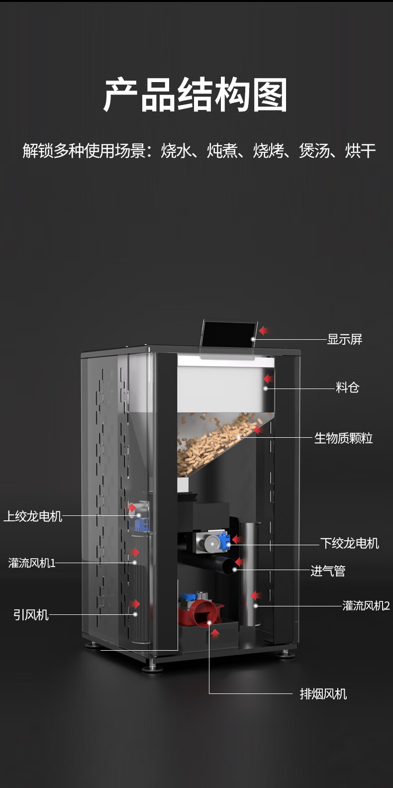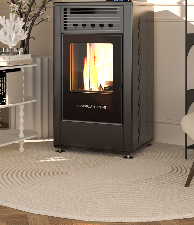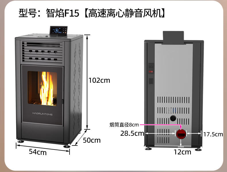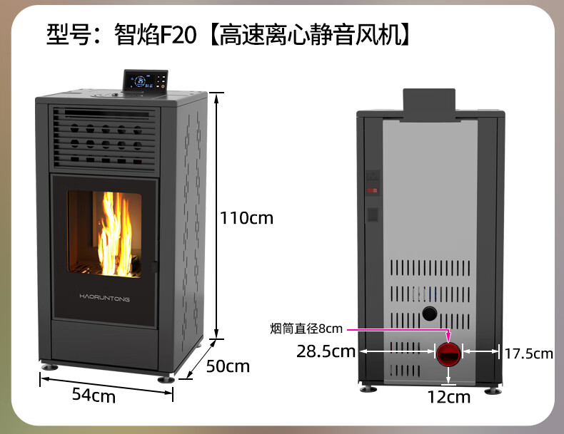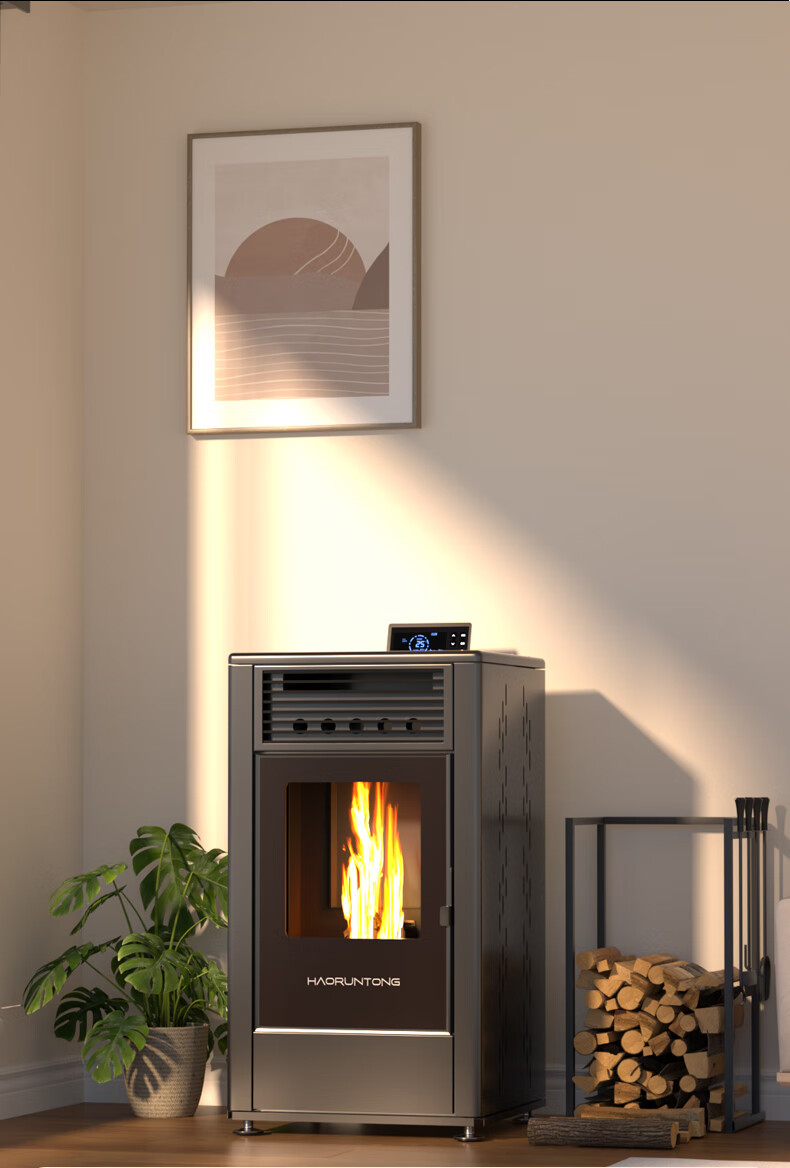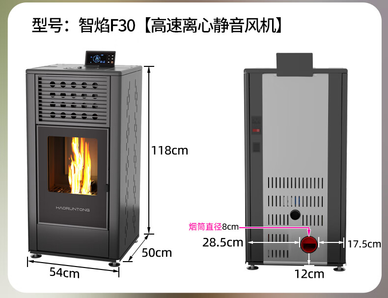 昊润通生物质颗粒取暖炉家用室内办公室别墅民宿商用无烟采暖柴火炉包邮 烧水款智焰30颗粒木柴两用