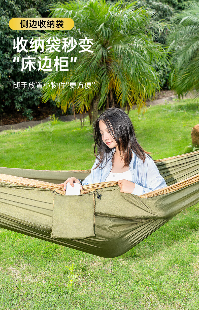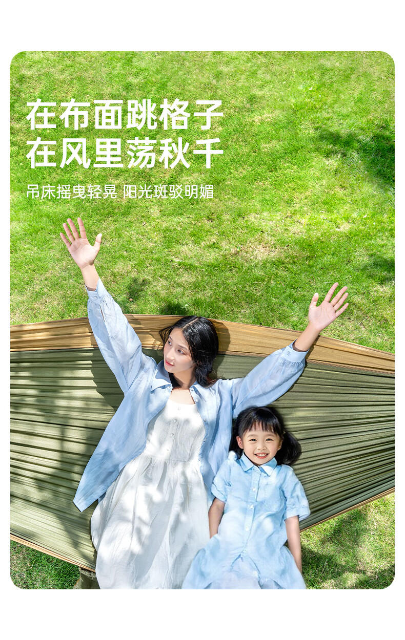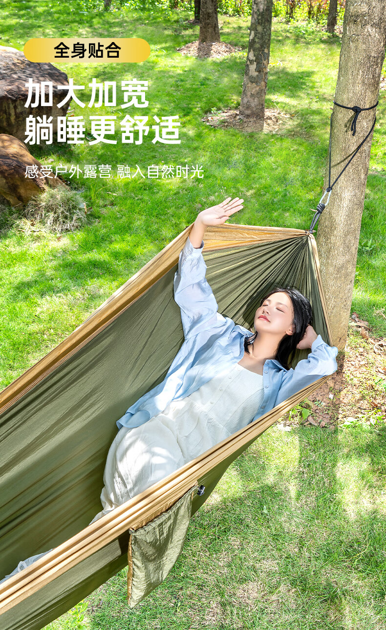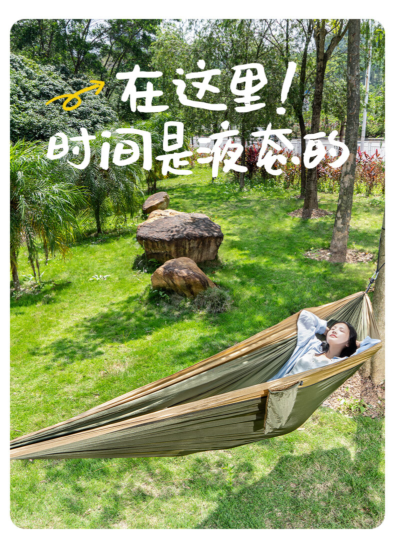盛源 户外降落伞布吊床 轻便 野外露营休闲秋千有加粗绑绳 挂扣 双人 墨绿配果绿