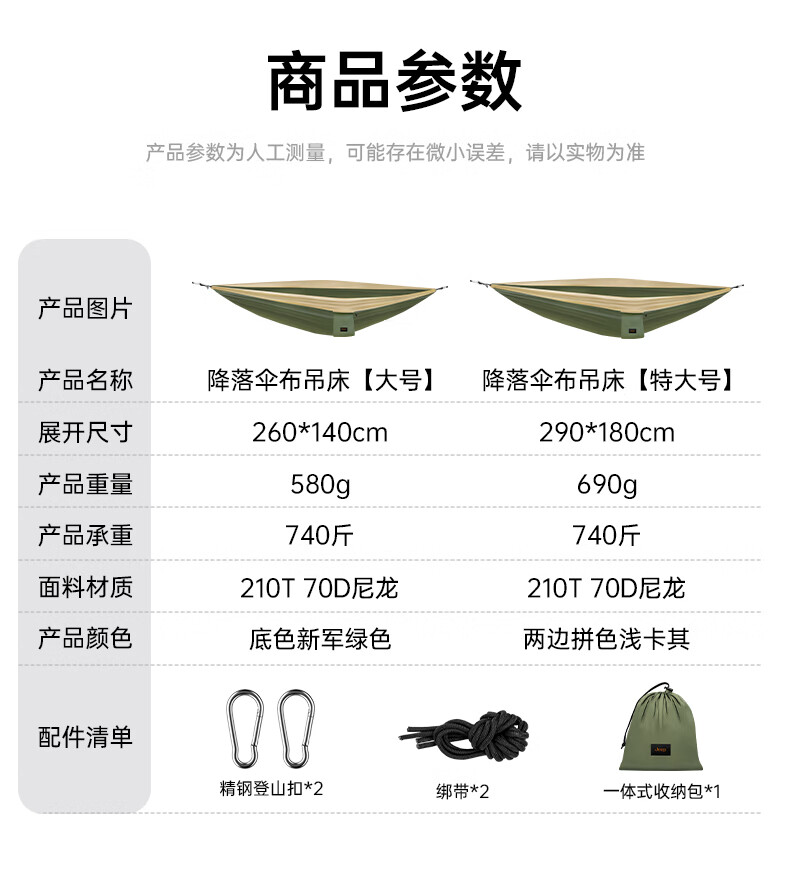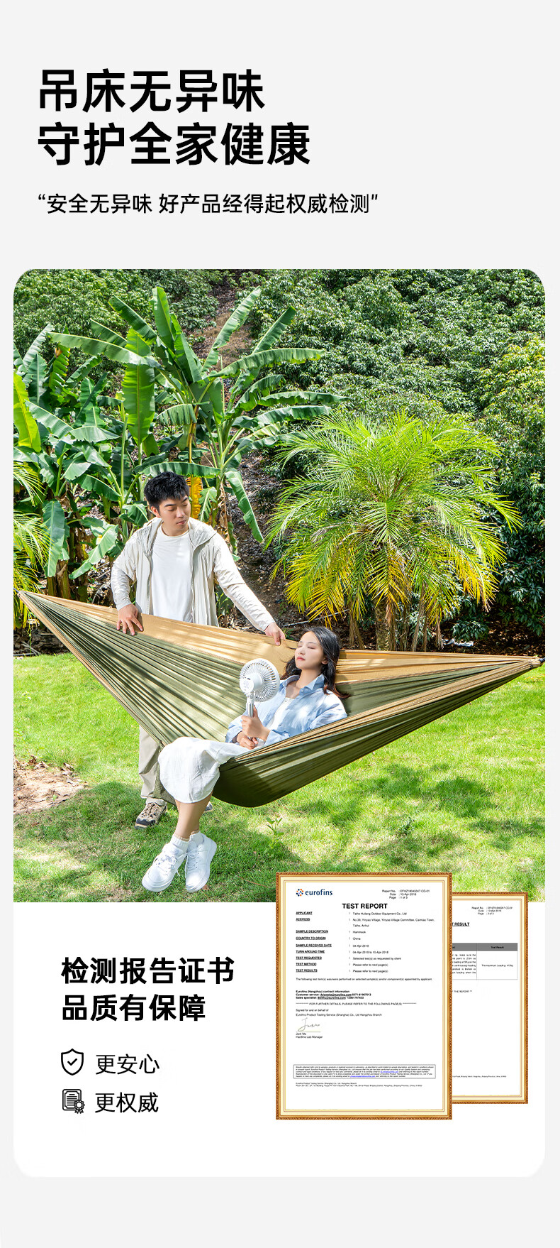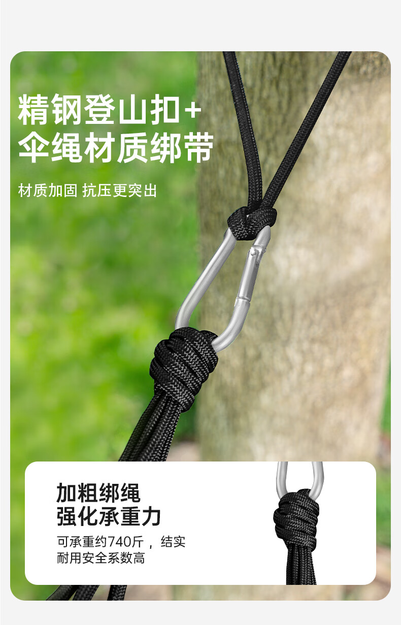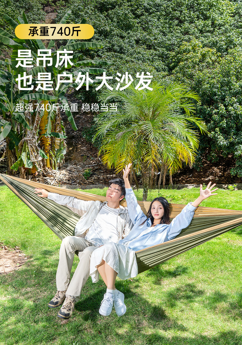 盛源 户外降落伞布吊床 轻便 野外露营休闲秋千有加粗绑绳 挂扣 双人 墨绿配果绿