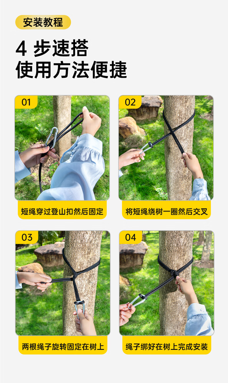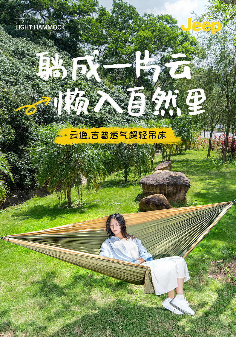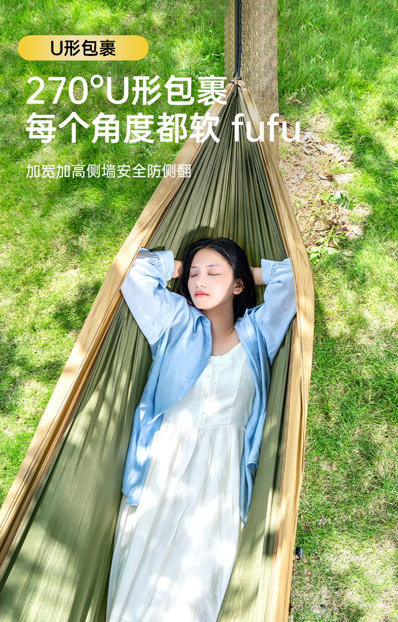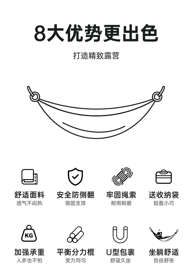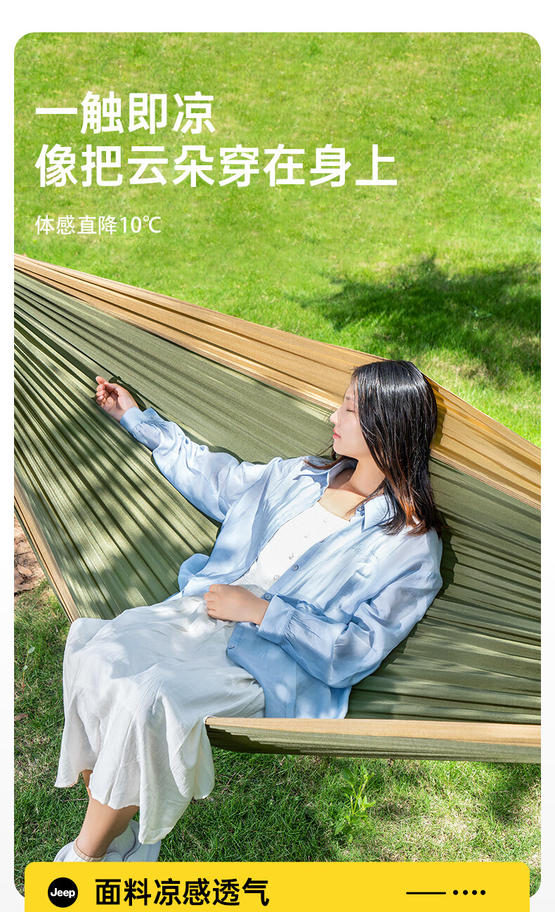JEEP户外露营吊床挂树休闲加厚加宽懒人室内单双人吊床弯木防侧翻睡袋 双人防侧翻吊床290*180cm超大号