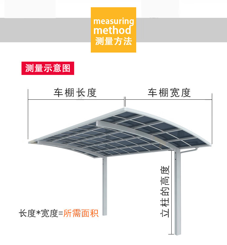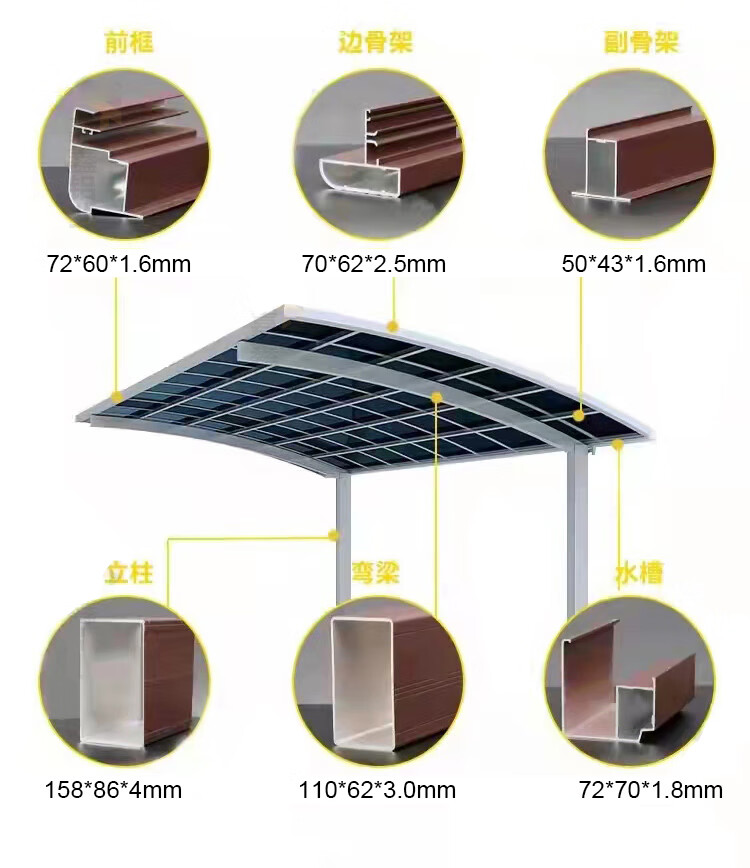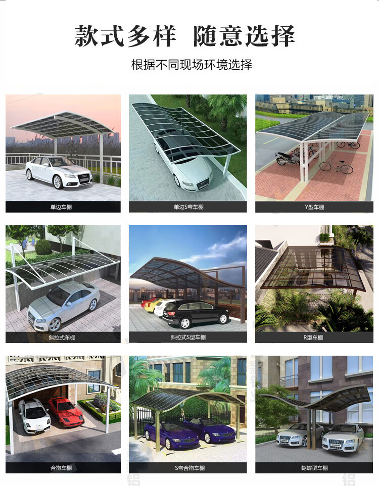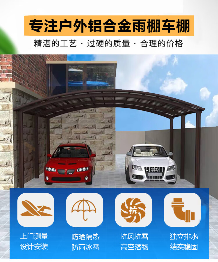 元族铝合金停车棚家用小区停车位雨棚室外汽车户外车库棚遮阳棚蓬 合抱车棚(每㎡材料费)