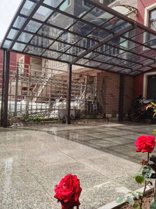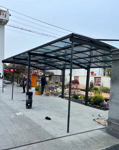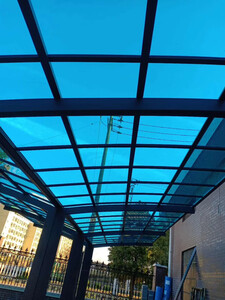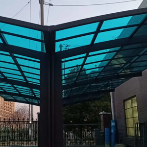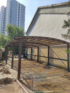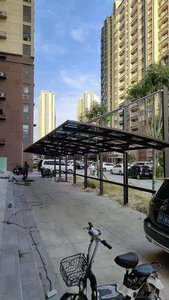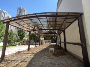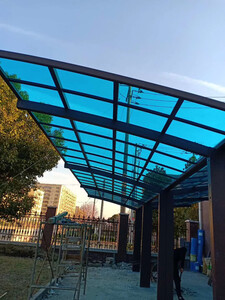 车棚整体效果好,我用的是咖啡色的骨架搭配茶色的板,这个颜色做起来很大气,领导们很喜欢,不错的一次网上购买,后续还有棚子会继续合作