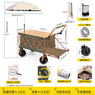 牧行带桌板露营车折叠聚拢型推车户外拉车摆摊桌车GL4 480L 卡其聚拢车+120加高摆摊桌