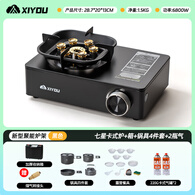 嘻由双用防爆卡式炉猛火户外便携式露营炊具2025新款卡磁炉燃气炉家用 【七头双用炉】+新4件套锅+2气 岩黑【七星猛火炉】