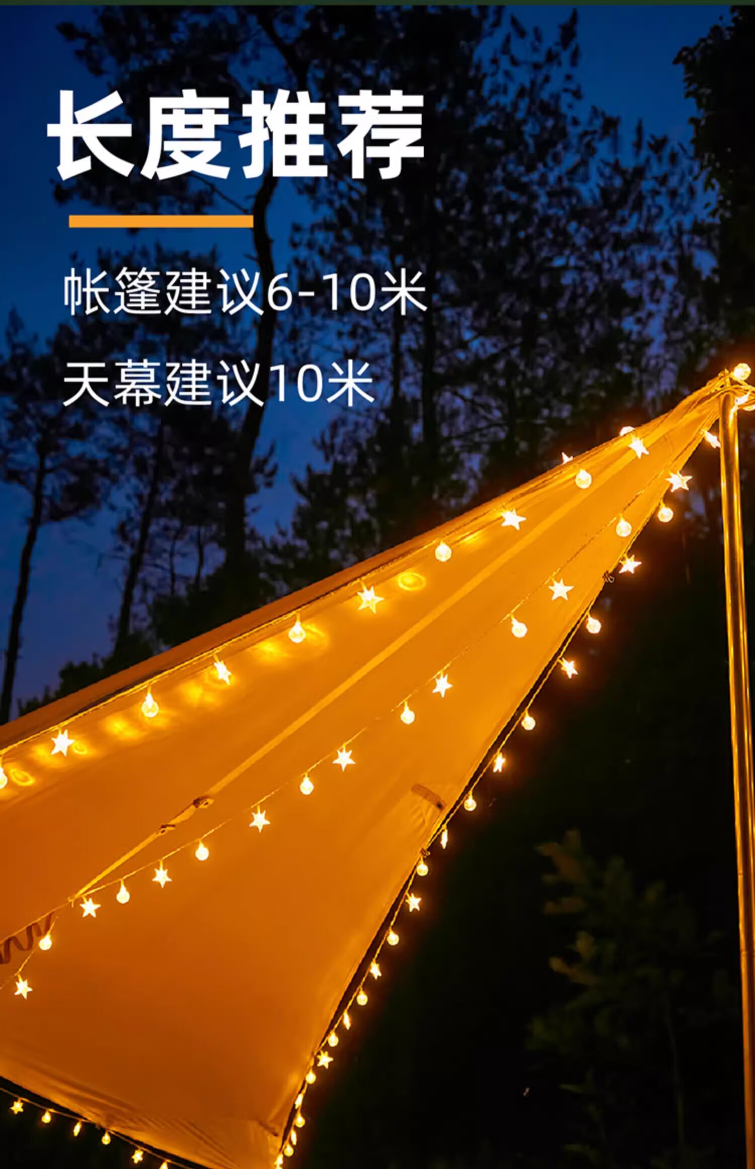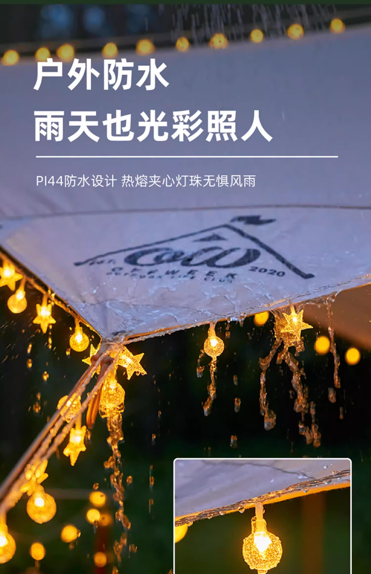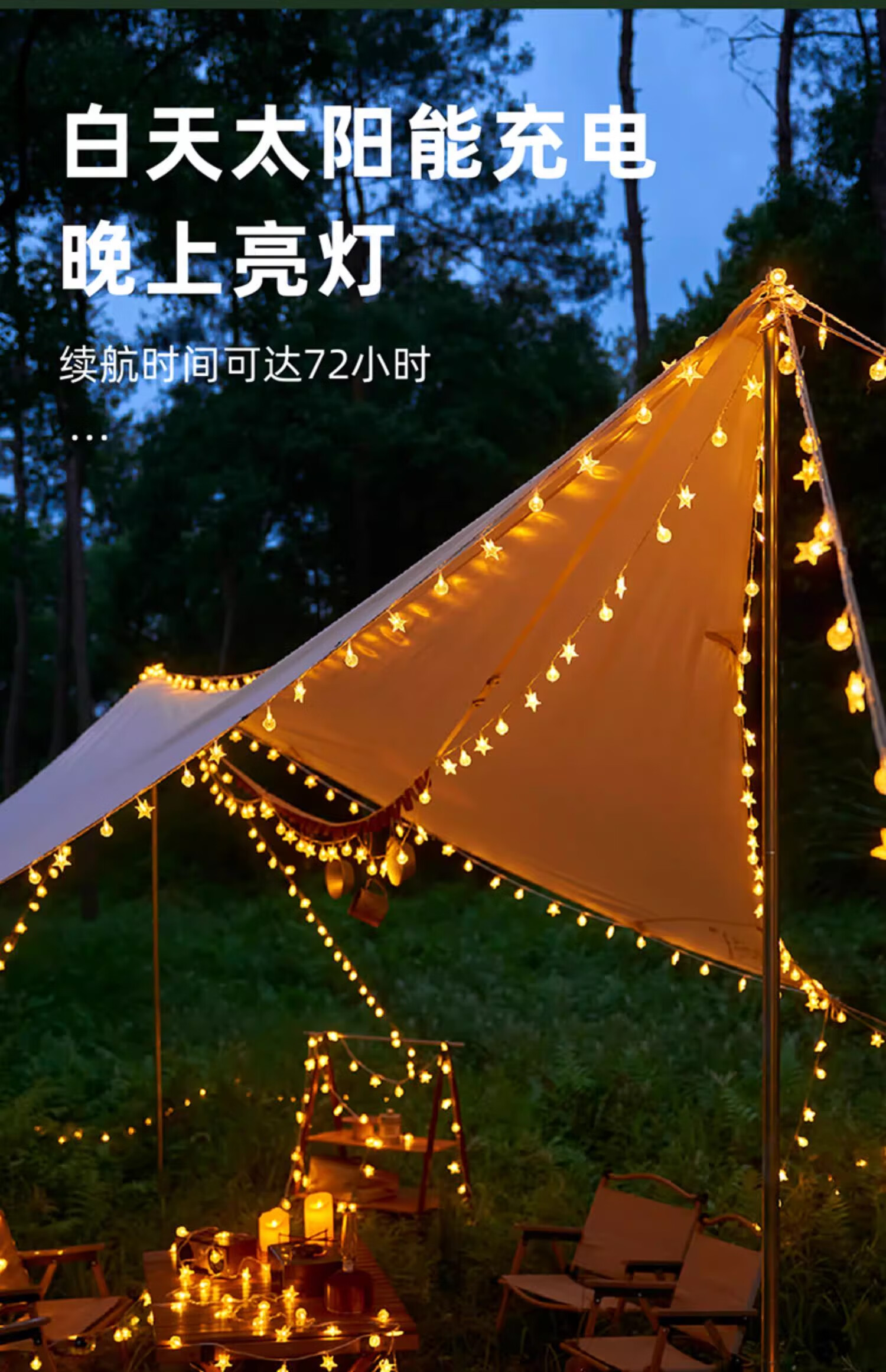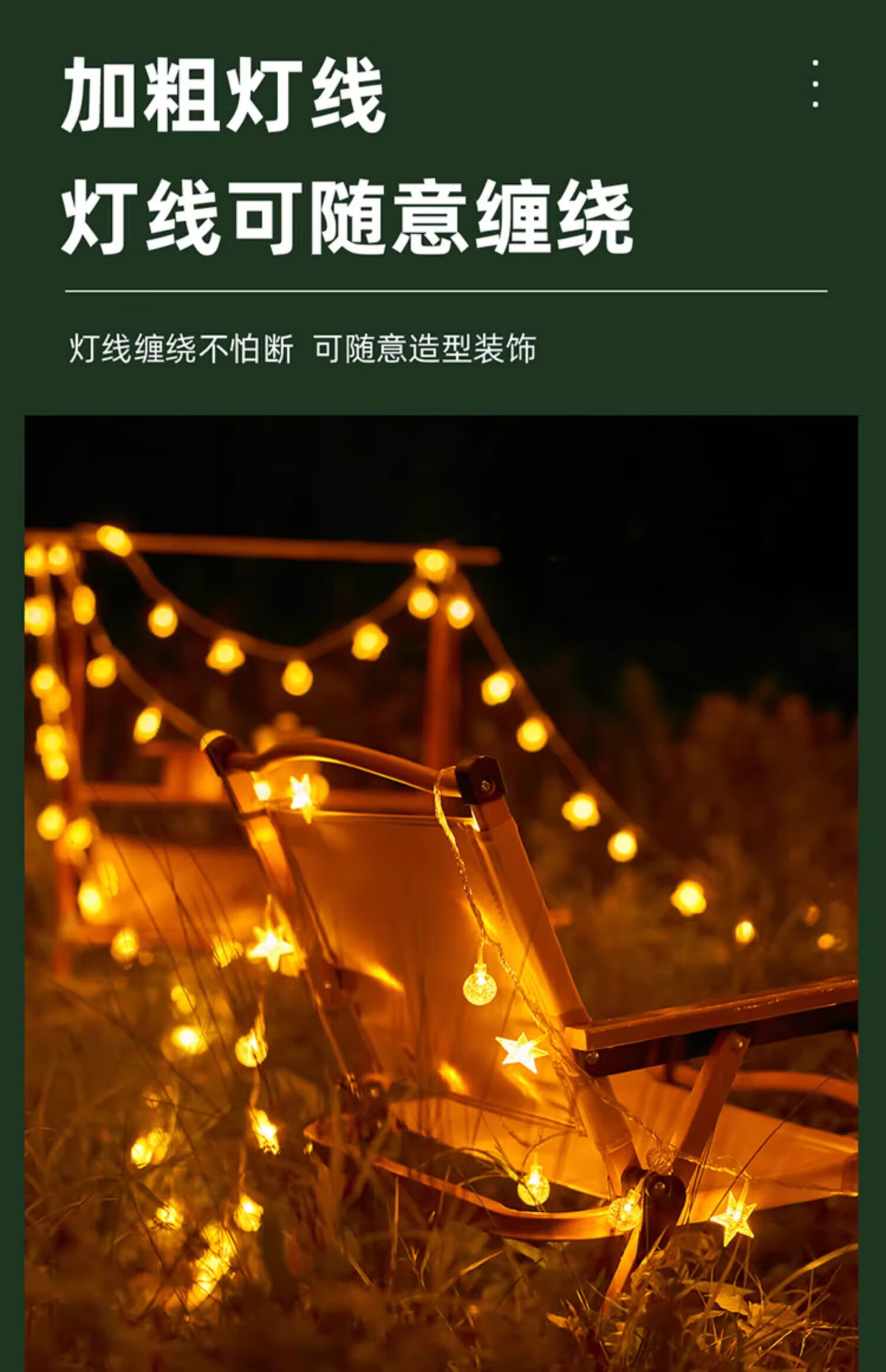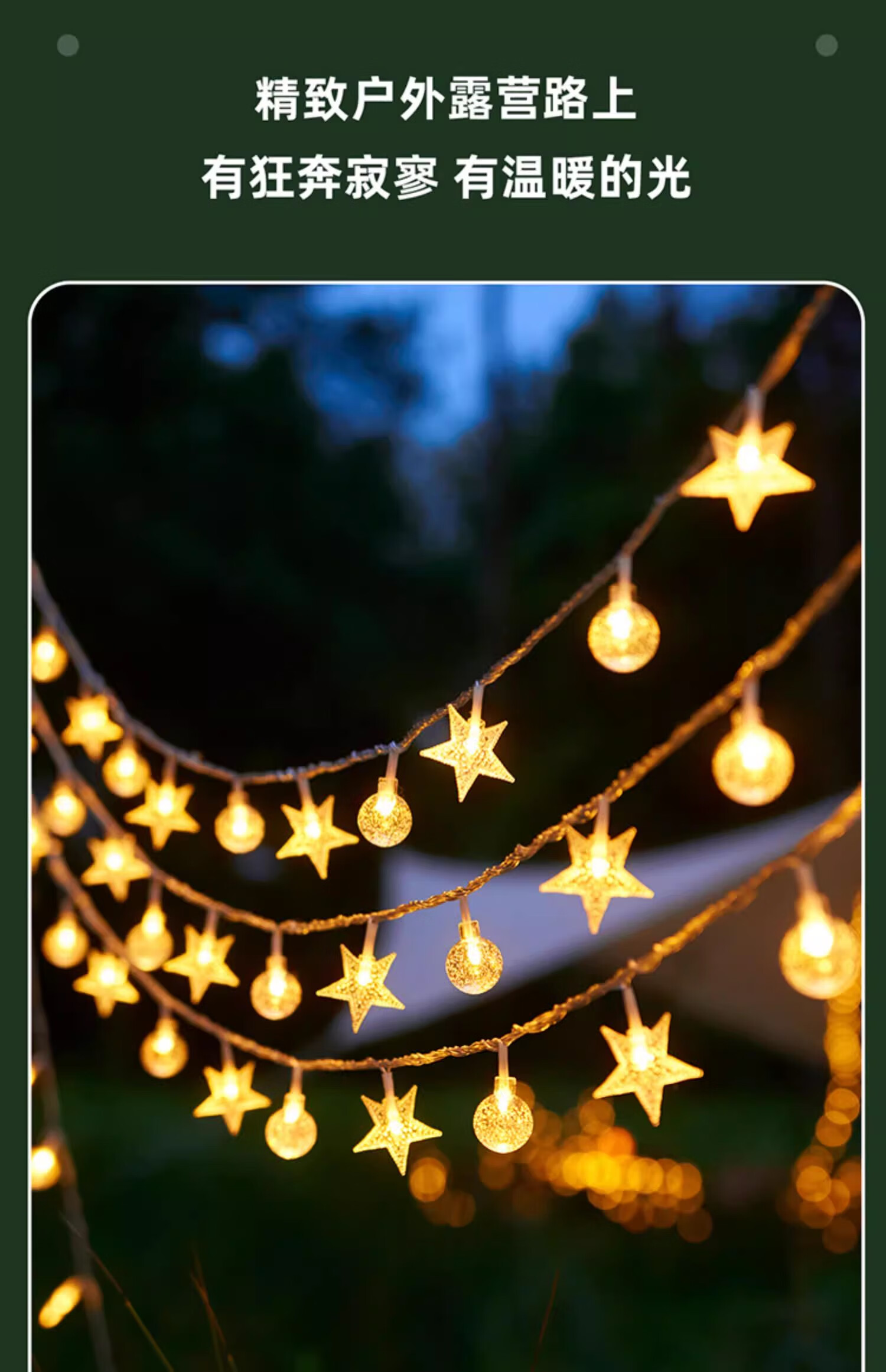 妃铃太阳能户外LED氛围灯露营灯串彩灯闪灯装饰灯节日布置帐篷星星灯 【防水】星星+水晶球-暖色 太阳能【15米100灯】8种闪烁模式