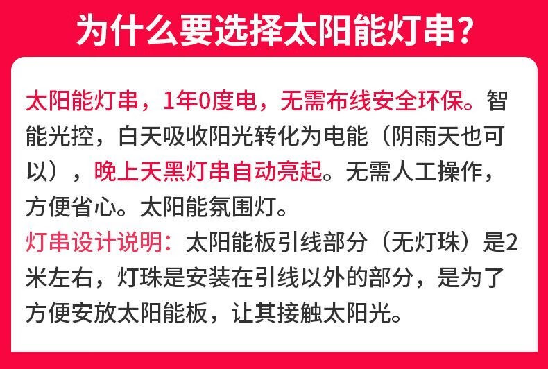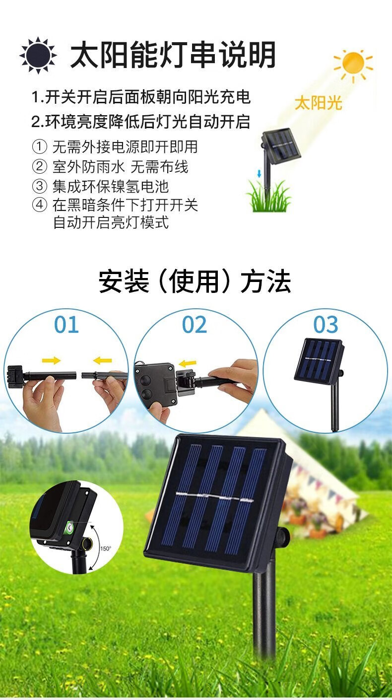灯泡很亮,又能防水就是一般小女人都能安装非常简单,科技感十足太阳能太节能了,给阳台这个小空间增添了节日的气氛,纷围感拉满确实值得