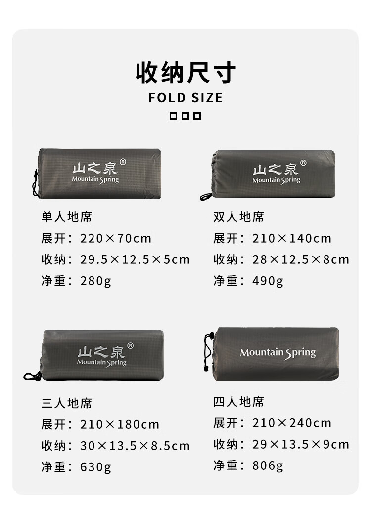 山之泉(Mountain Spring)超轻薄双人地席防水垫过功能救生毯防水防潮铝膜野餐垫加大地布 双人(单张)210*140