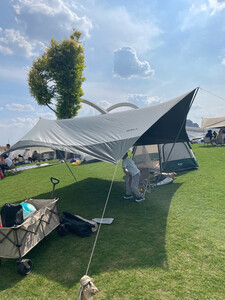 天幕相当的大,比我们想象的要大,质量挺好,很凉快,一开始不会支起来,后来问了客服支起来了,很简单,很容易,相当好用,夏天出游必备。