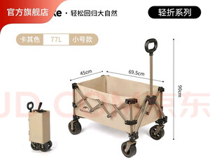 Naturehike挪客轻折全地形聚拢露营车宽轮折叠小推车野外摆摊快递购物手拉车 卡其色/Mini/ 140L