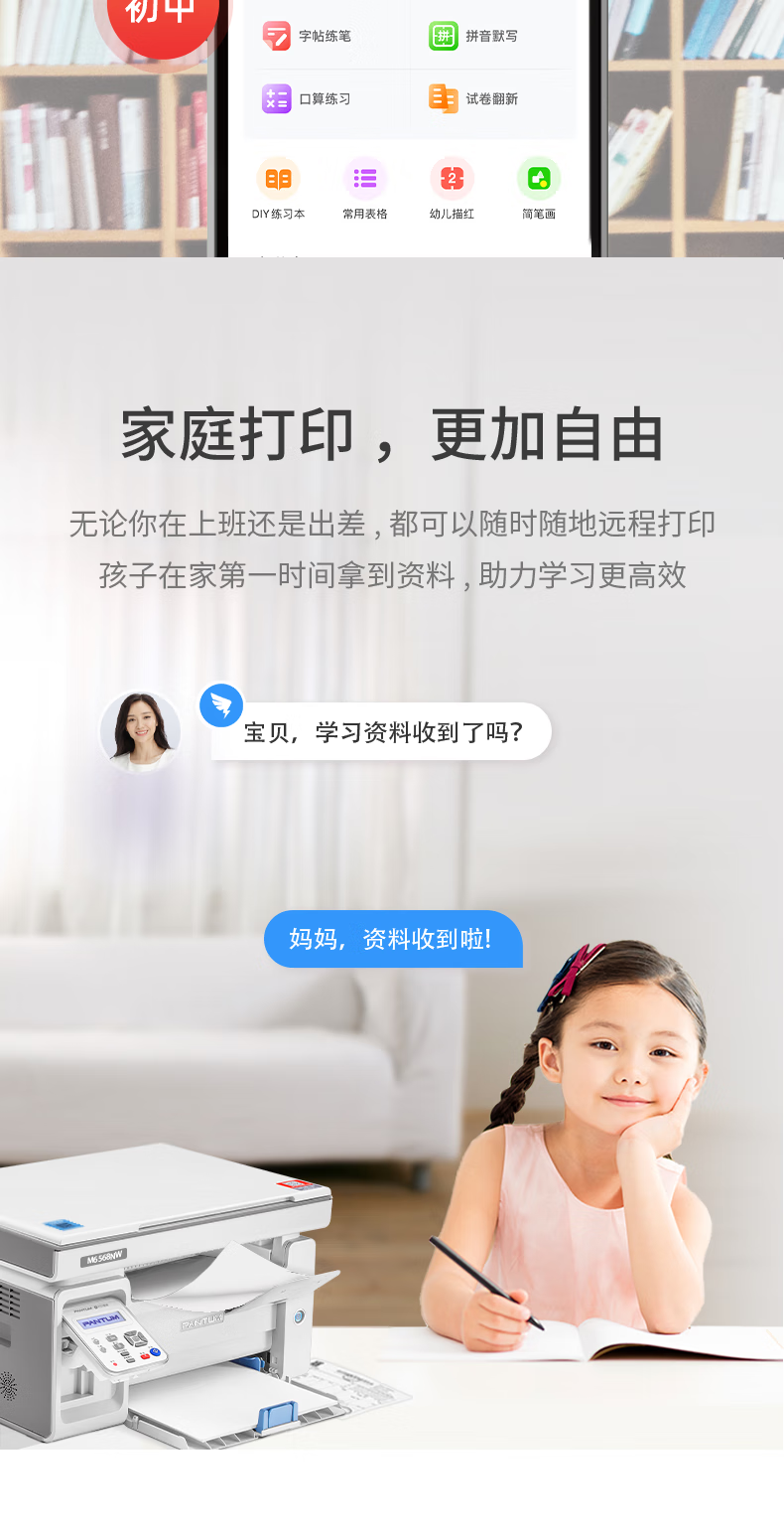 这款激光打印机操作简单,打印清晰速度快,带扫描功能,家用给孩子打作业卷子很合适