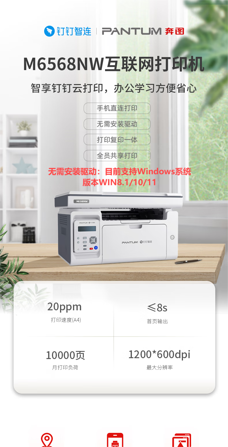 奔图(PANTUM) M6509NW 黑白激光多功能一体机 企业办公商用打印机 支持企业定制