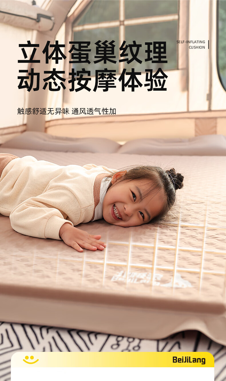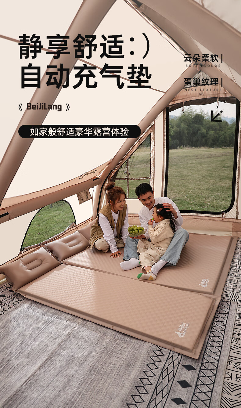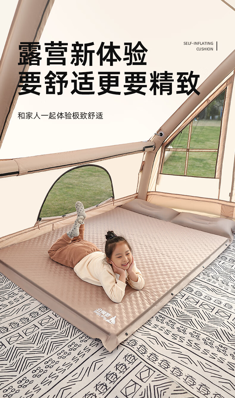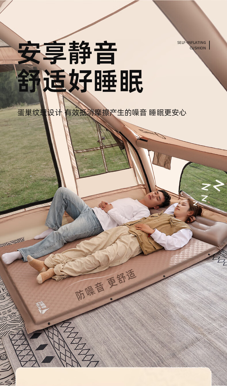 北极狼充气床垫户外自动充气垫便携露营睡垫打地铺过夜地垫防潮气垫床 【加厚5cm】米色双人-蛋巢款