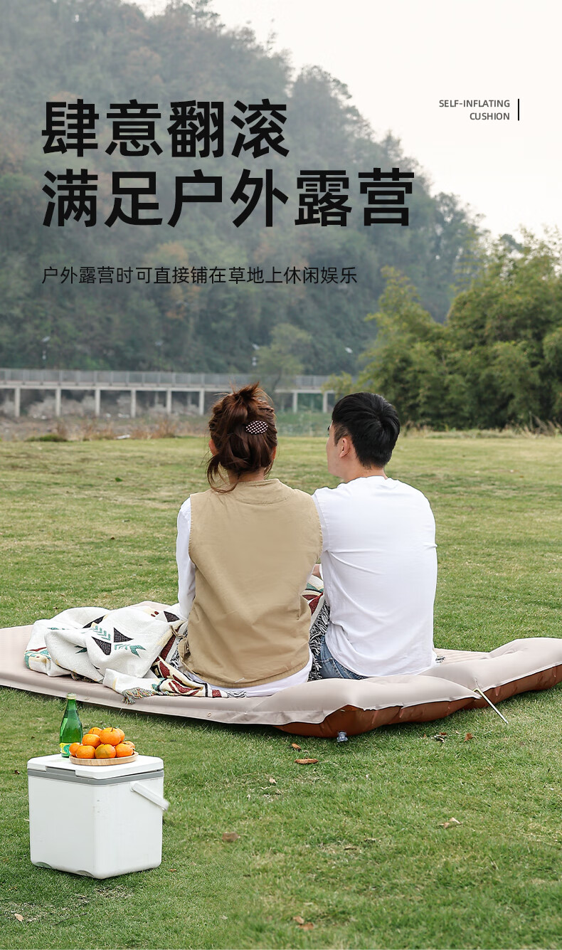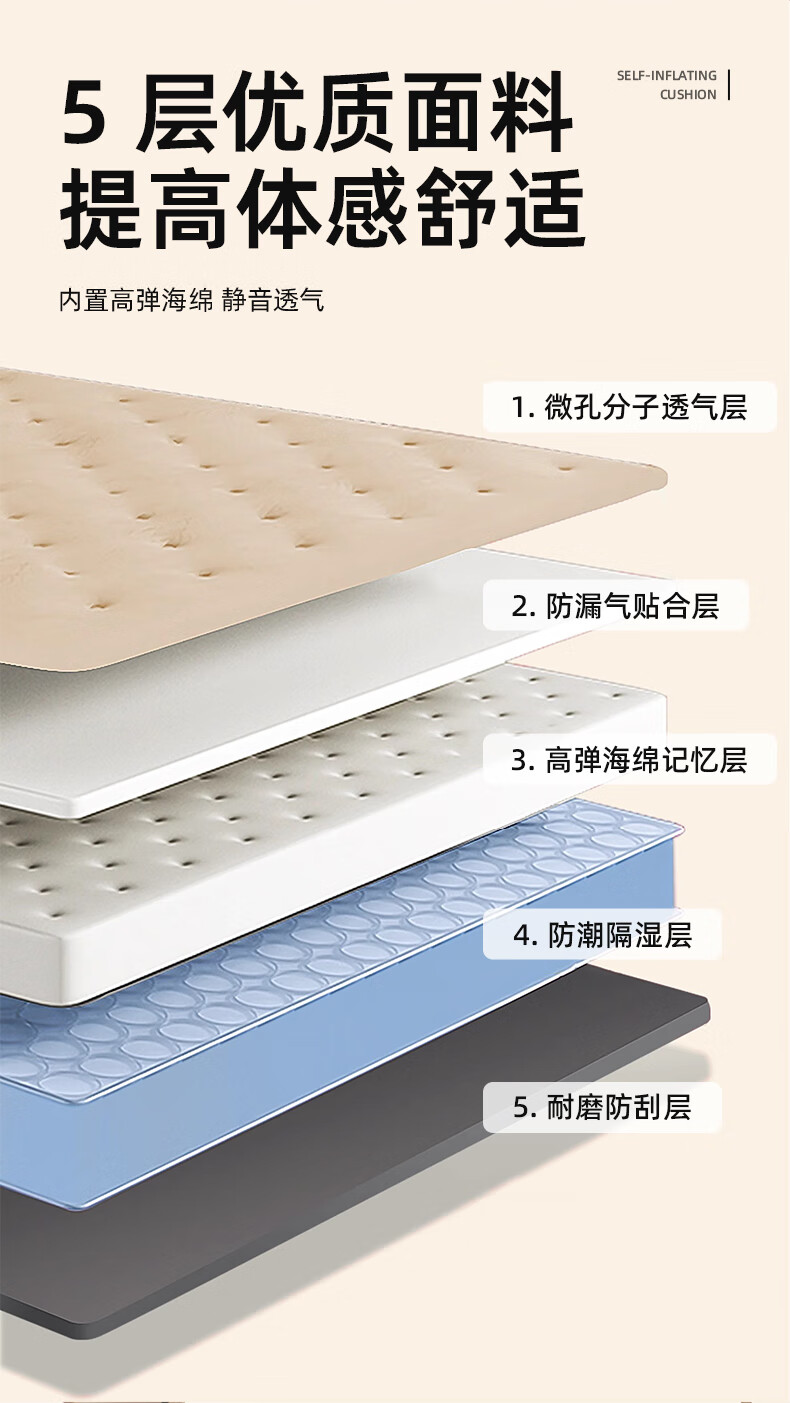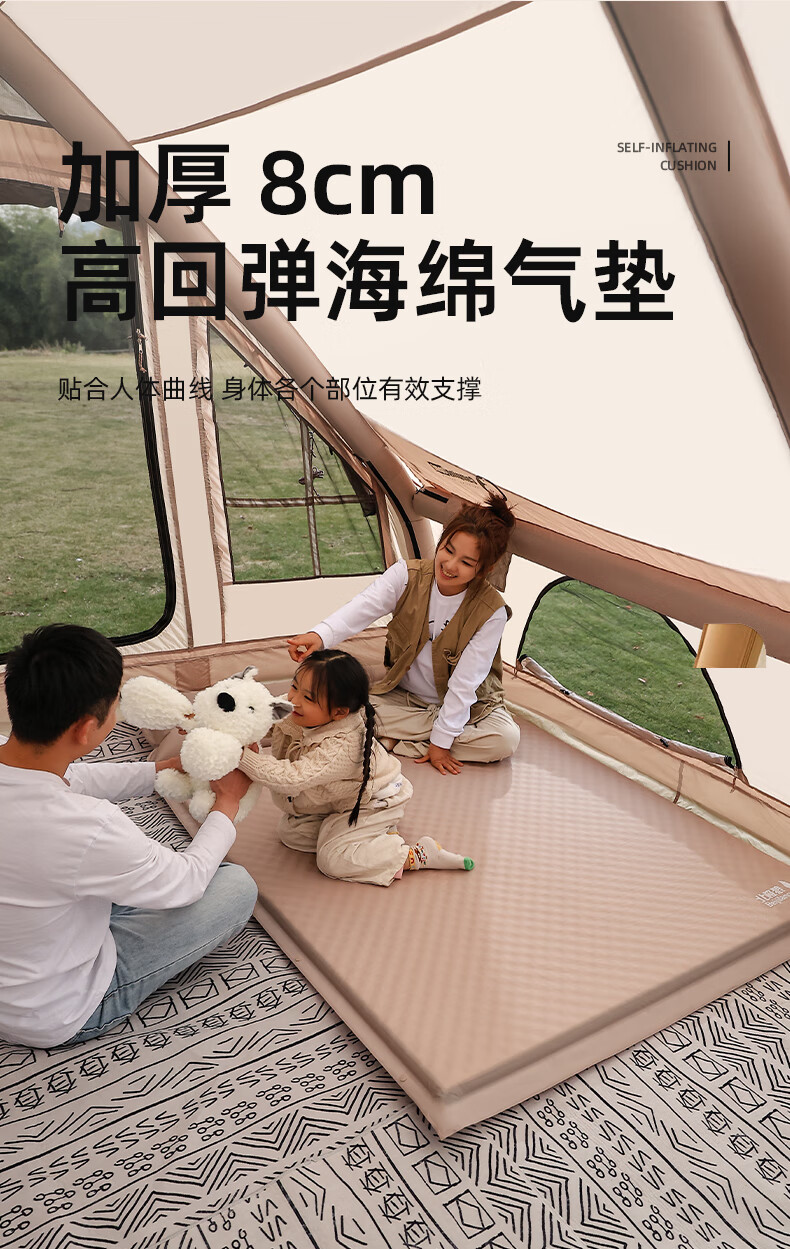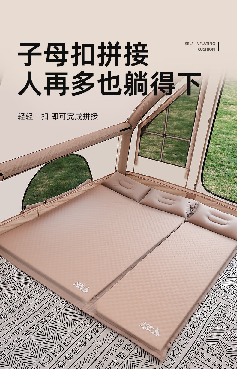 北极狼充气床垫户外自动充气垫便携露营睡垫打地铺过夜地垫防潮气垫床 【加厚5cm】米色双人-蛋巢款