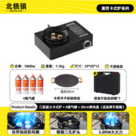 北极狼卡式炉户外露营炉具便携卡磁炉防风猛火瓦斯炉野外火锅燃气煤气灶 5.8KW黑色+烤盘+4罐+收纳箱