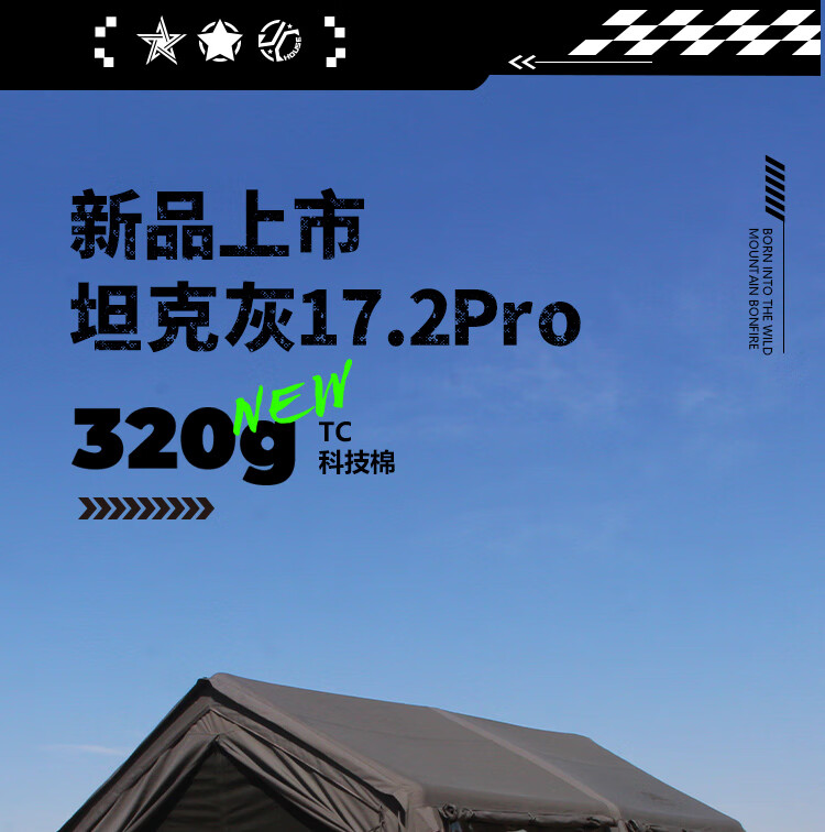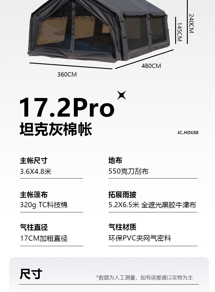 京诚豪斯JcHouse320克科技棉17.2pro充气帐篷野露营地户外屋脊长搭过夜 豪斯17.2pro坦克灰