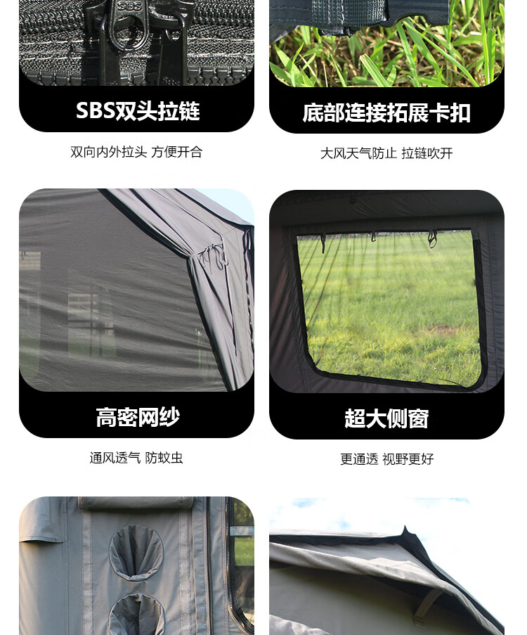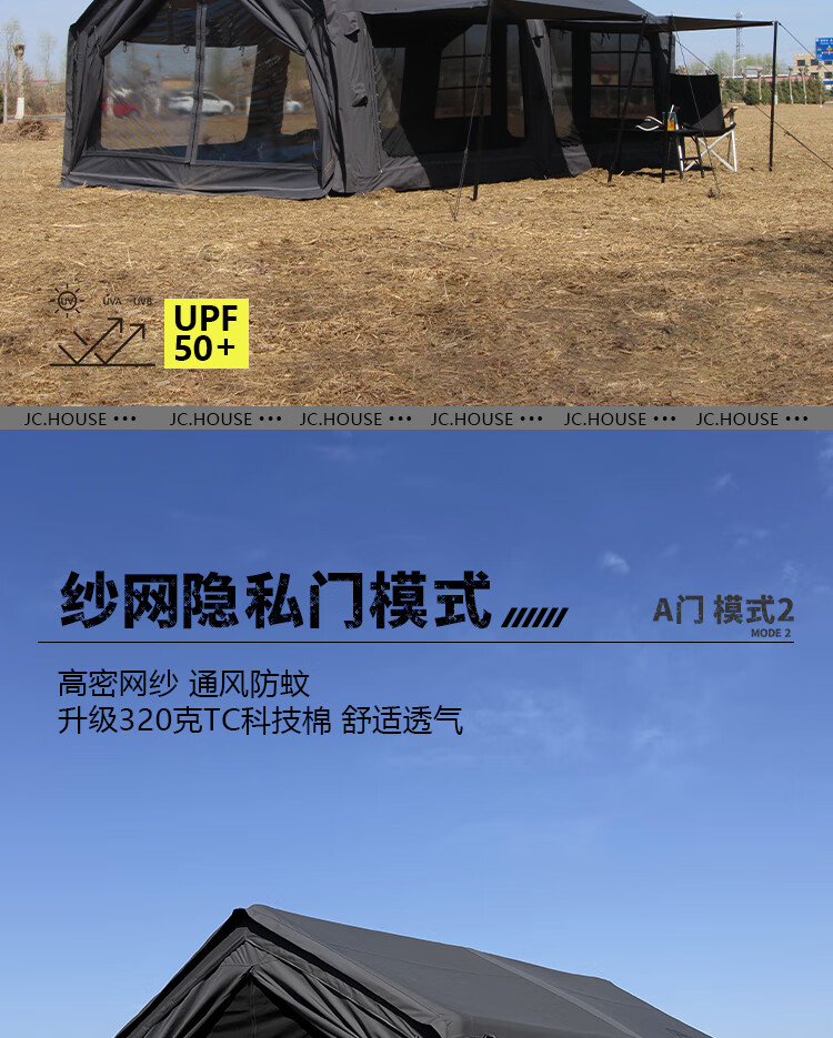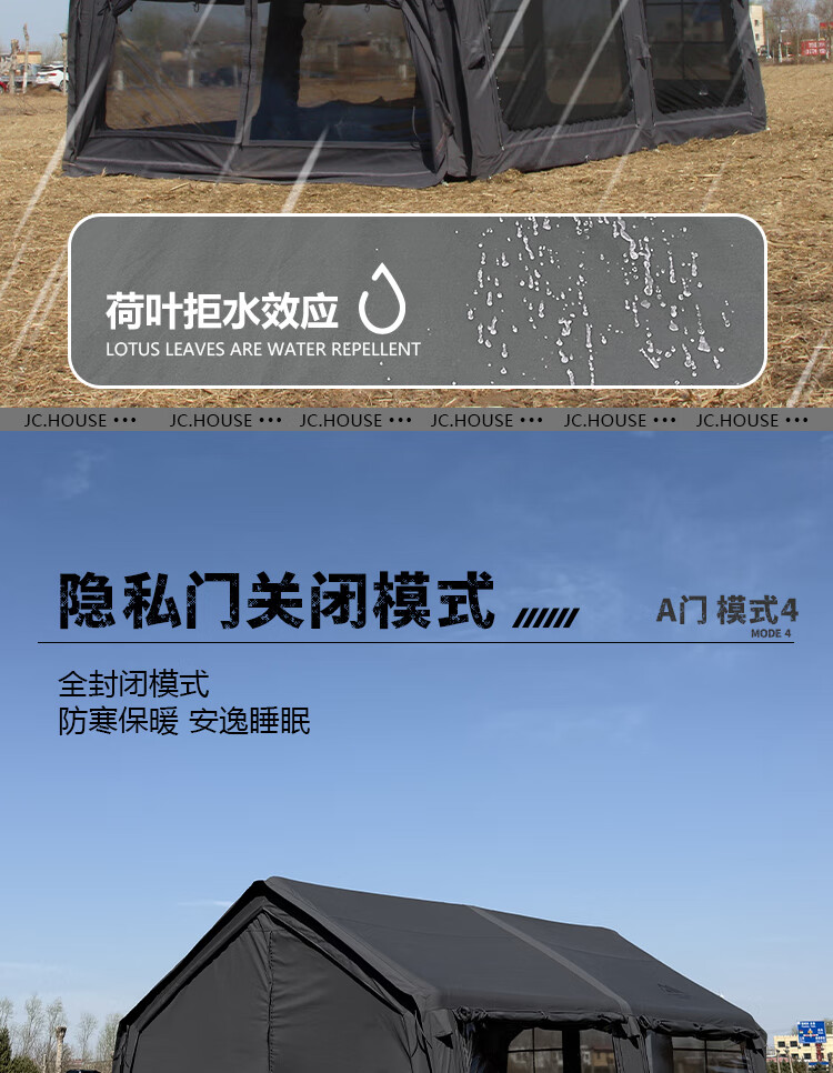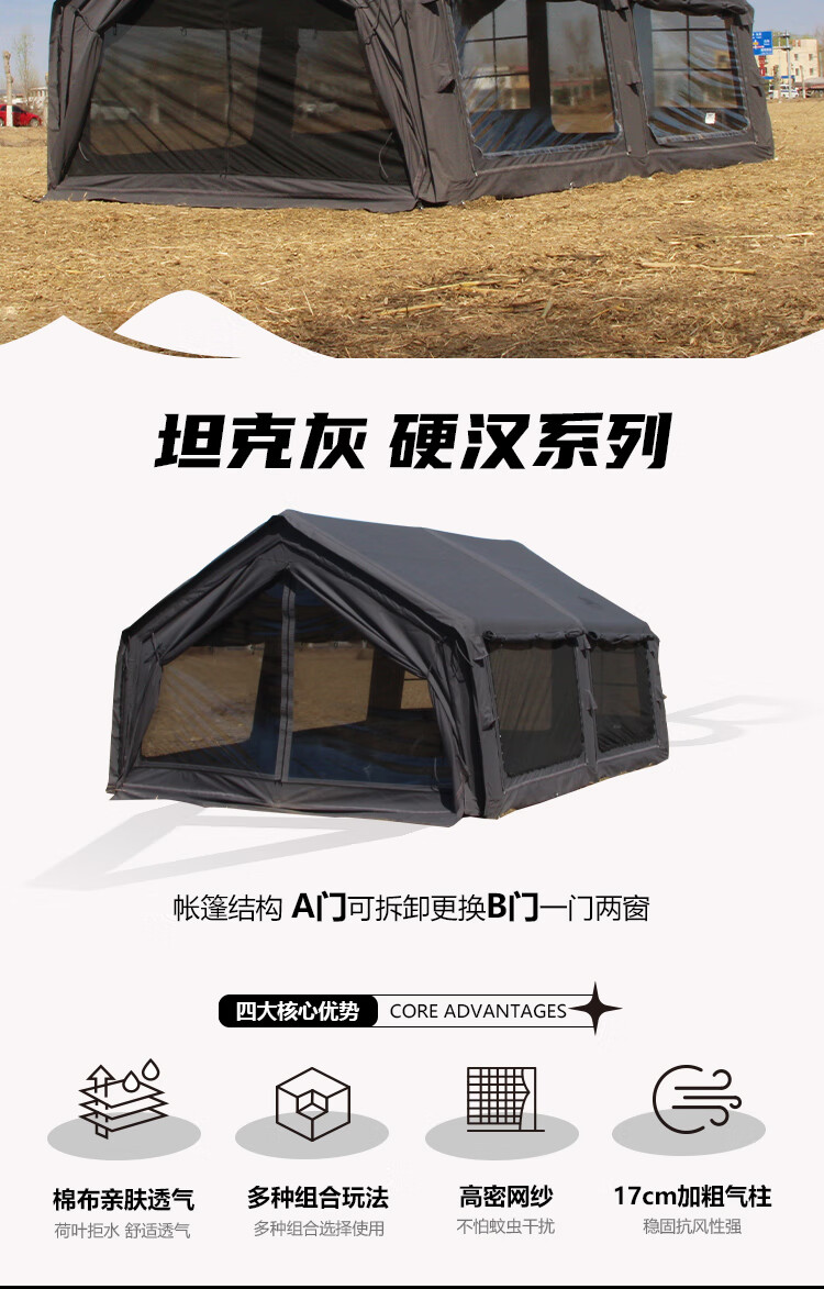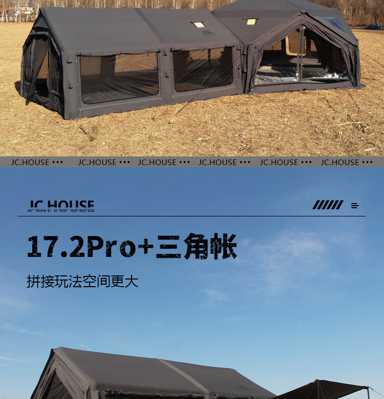 京诚豪斯JcHouse17.2㎡pro320克科技棉充气帐篷露营过夜屋脊帐 豪斯(坦克灰色)17.2mpro充气帐