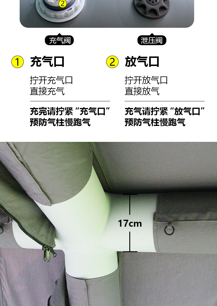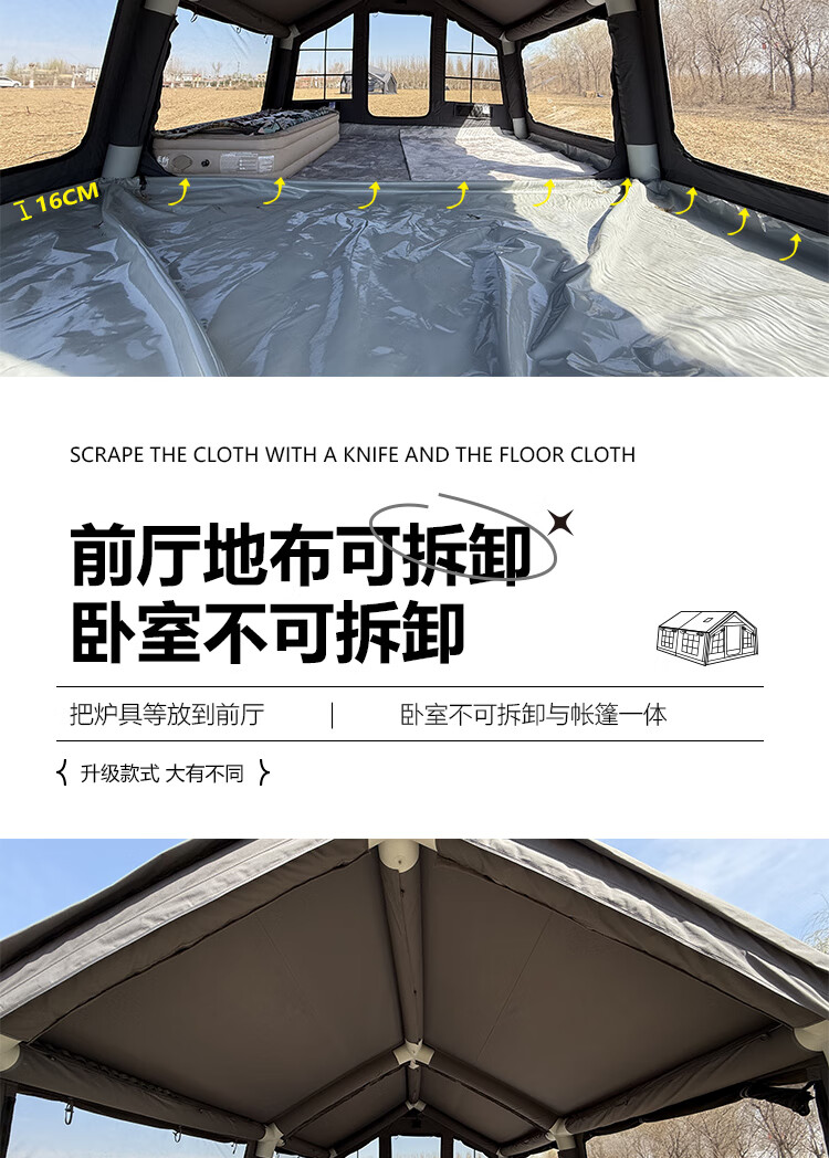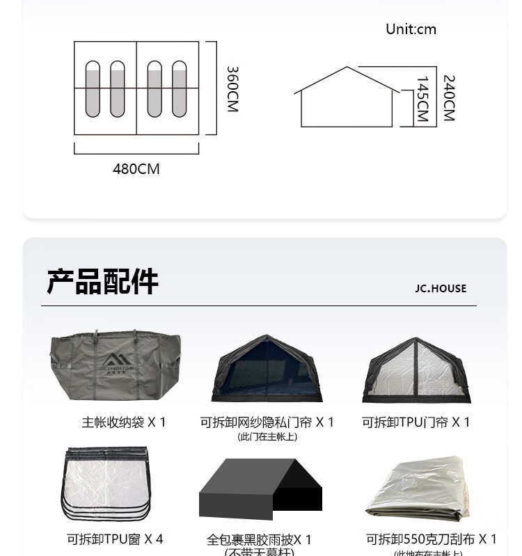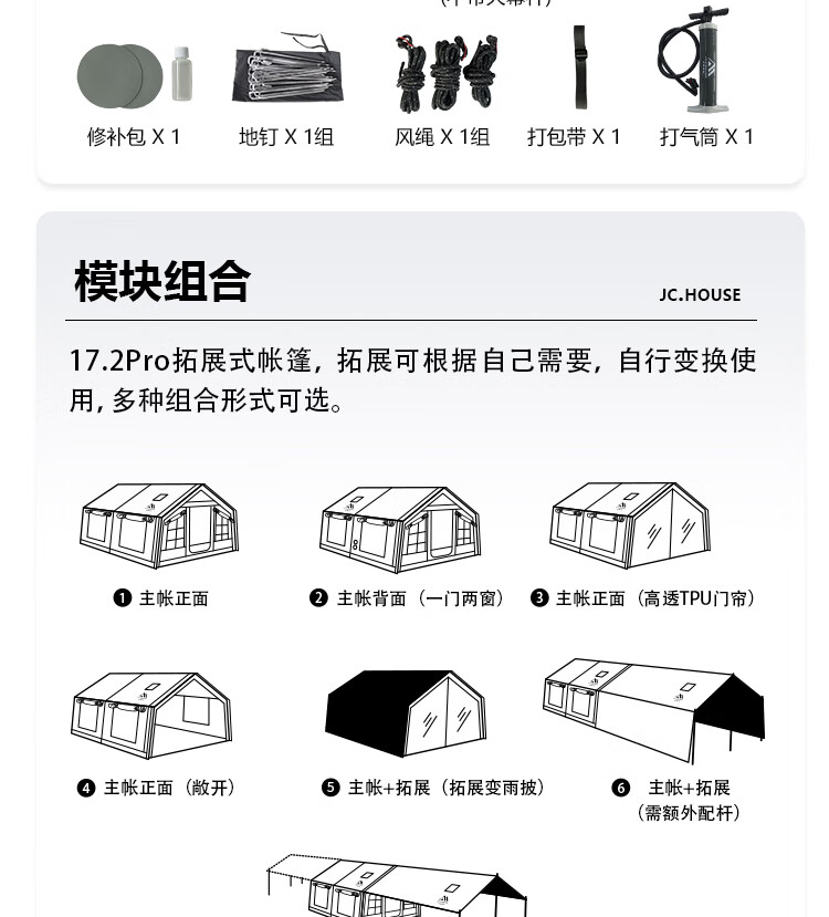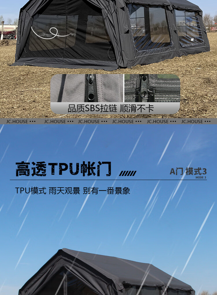 京诚豪斯JcHouse17.2㎡pro320克科技棉充气帐篷露营过夜屋脊帐 豪斯(坦克灰色)17.2mpro充气帐
