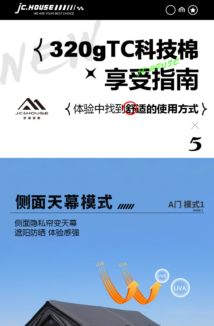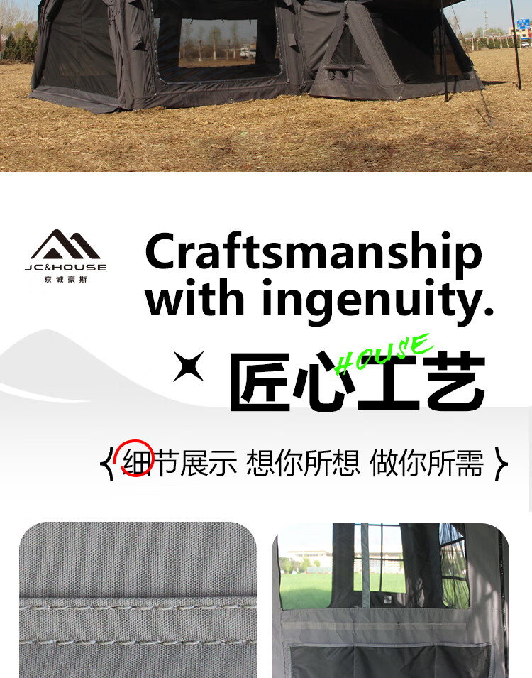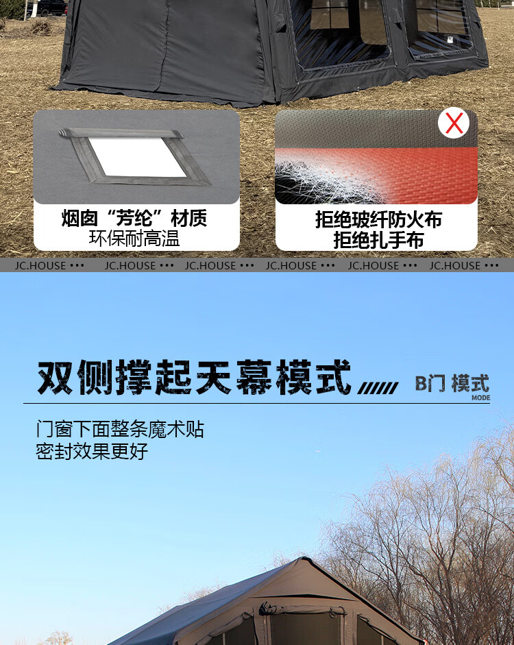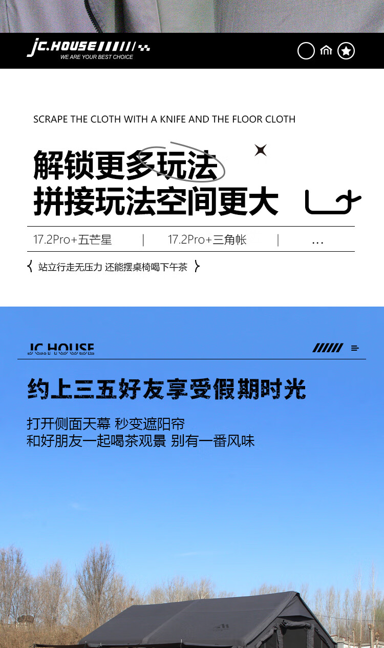 京诚豪斯JcHouse17.2pro320克科技棉充气帐篷一室一厅屋脊拓展式野露营地 豪斯17.2pro坦克灰