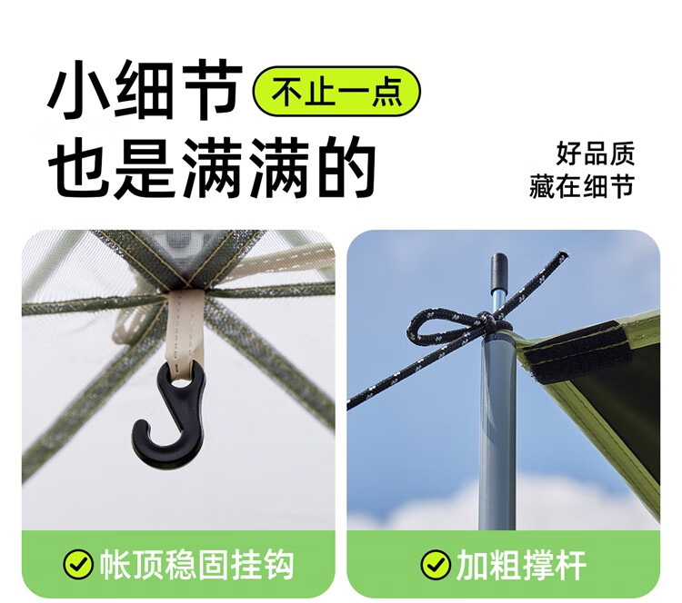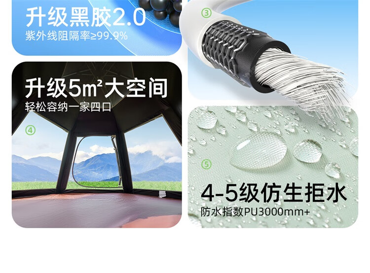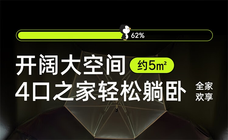 一秒速开太方便了,带出去露营省时省力。遮光效果不错,空间也够大,性价比很高。