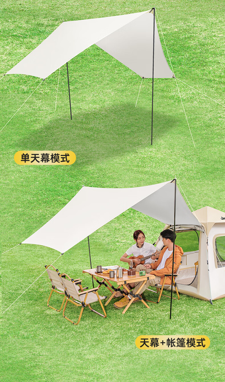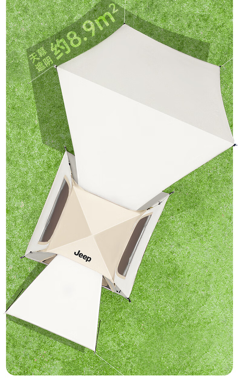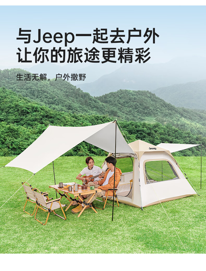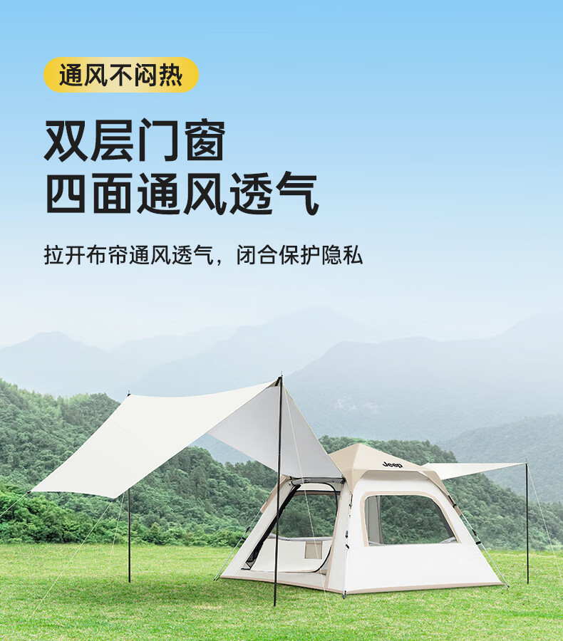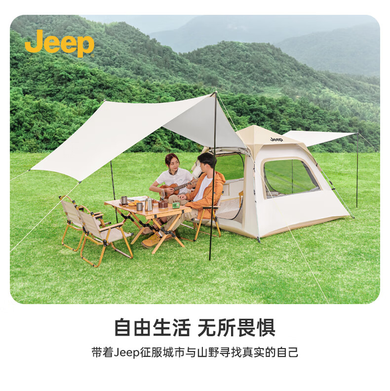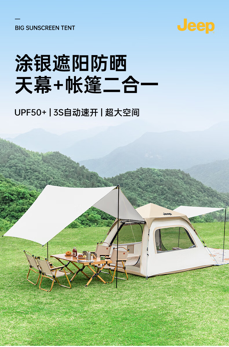 JEEP天幕帐篷户外露营帐篷全自动便捷速开天幕二合一防晒家庭野营装备 涂银天幕帐篷两门两窗+防潮垫