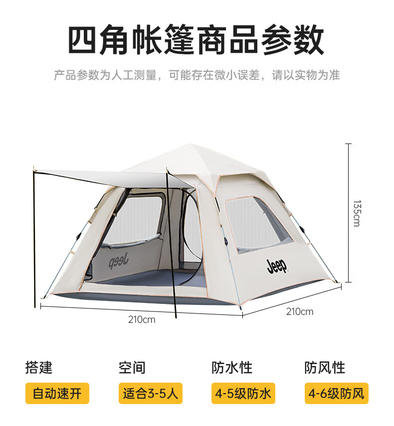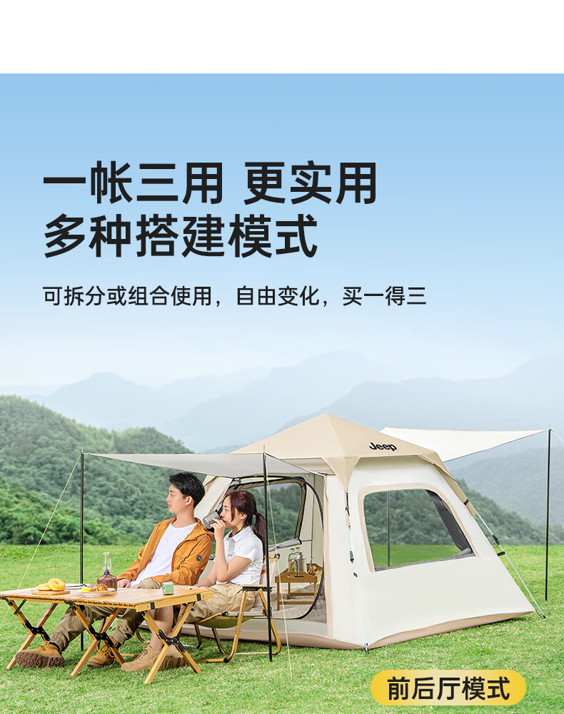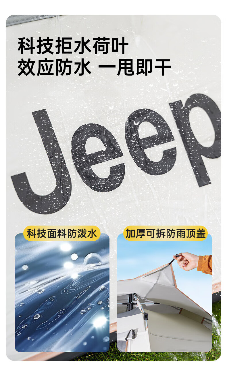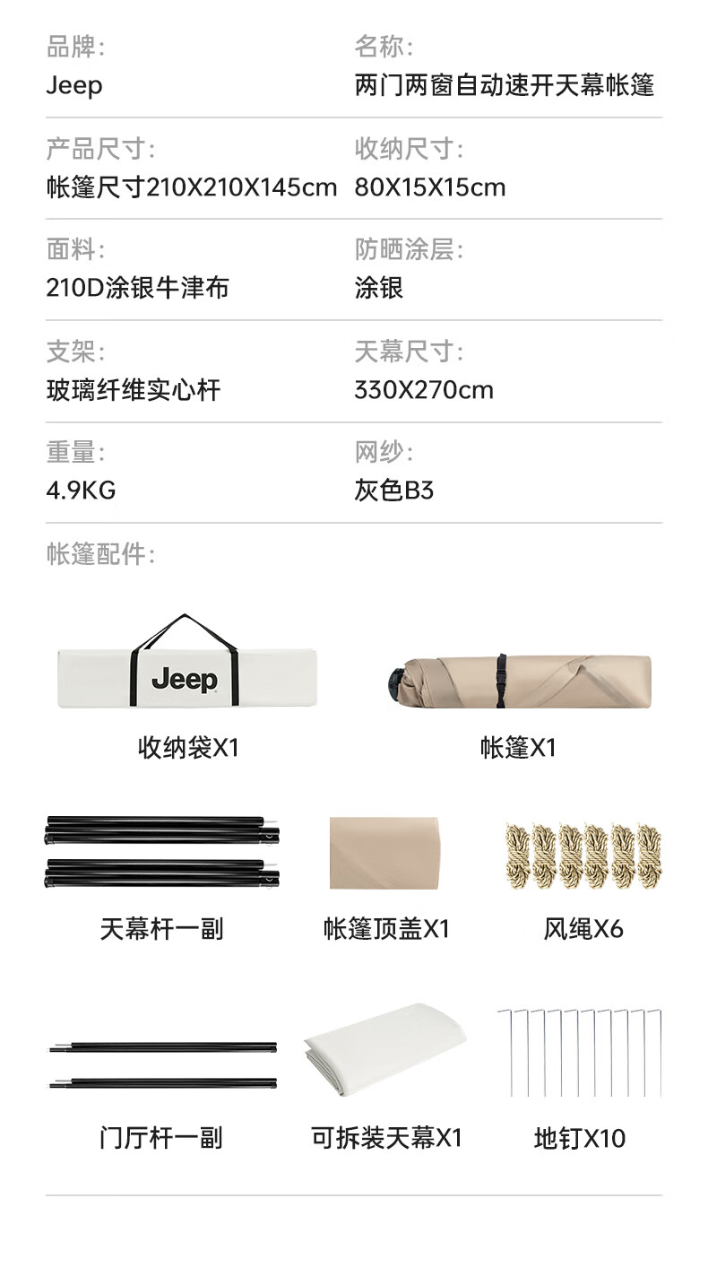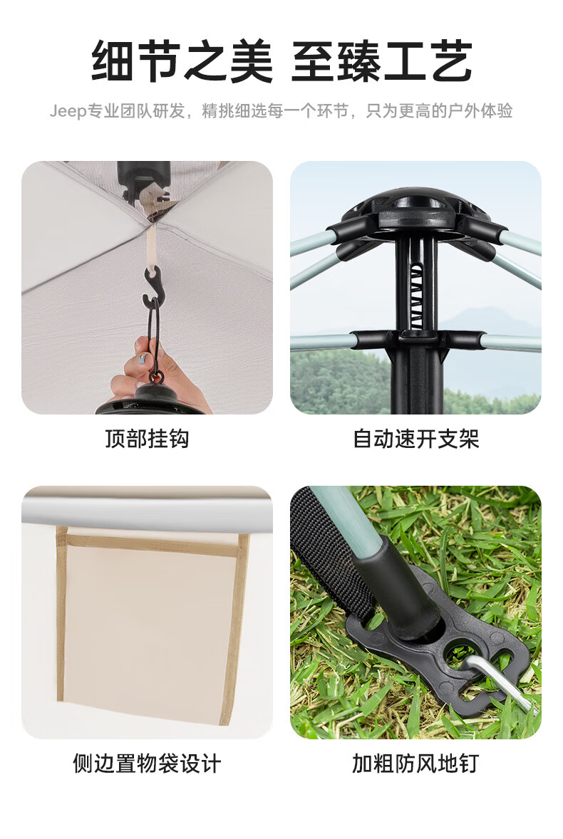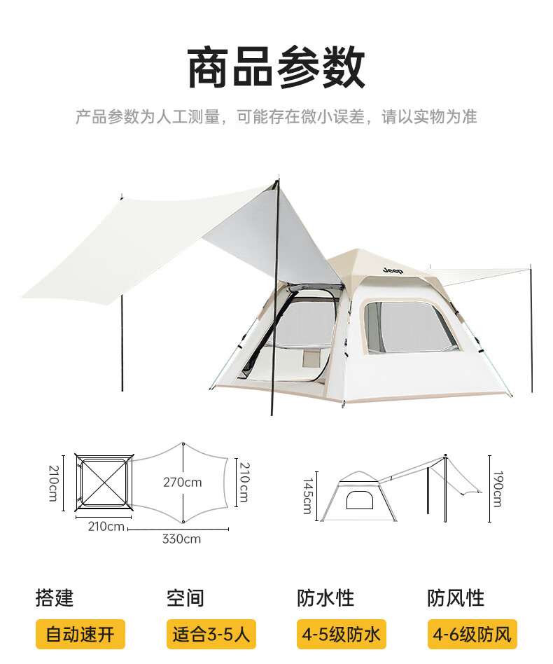 JEEP天幕帐篷户外露营帐篷全自动便捷速开天幕二合一防晒家庭野营装备 涂银天幕帐篷两门两窗+防潮垫