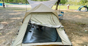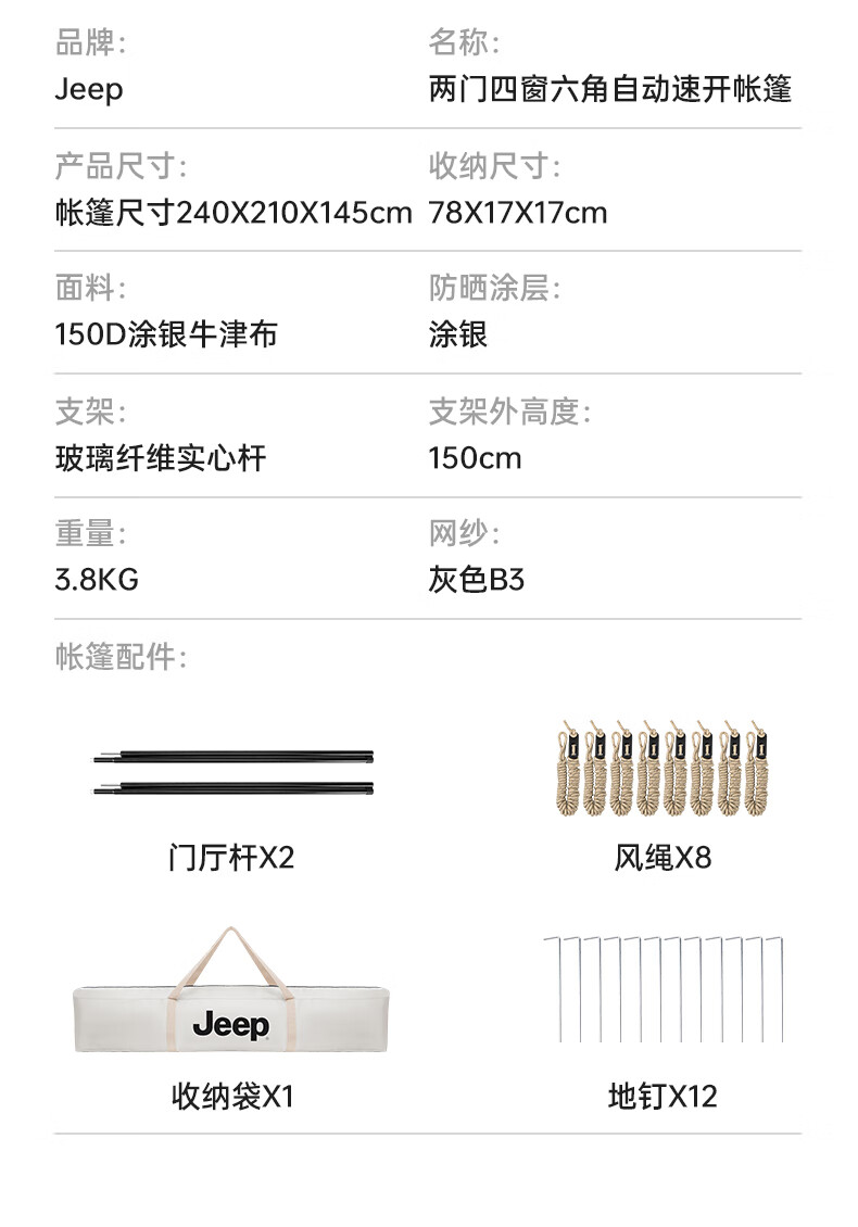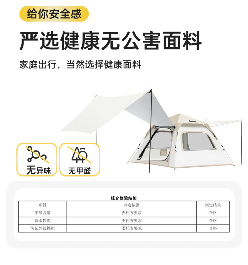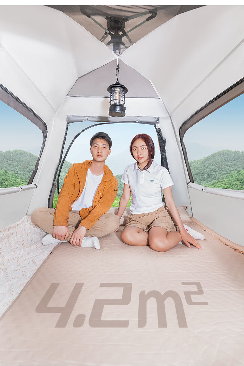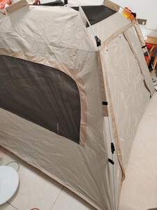 性价比比较高,空间很大,容纳三四个人完全没有问题。最满意的地方就是打开和折叠真的很方便,不像我之前的一个帐篷费力。新帐篷的气味还是有一点点的,不过问题不大,用一两次应该就没什么问题了。