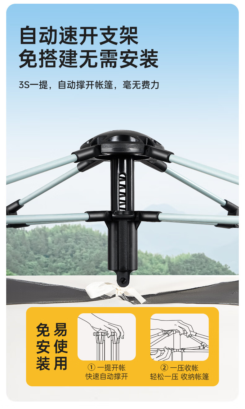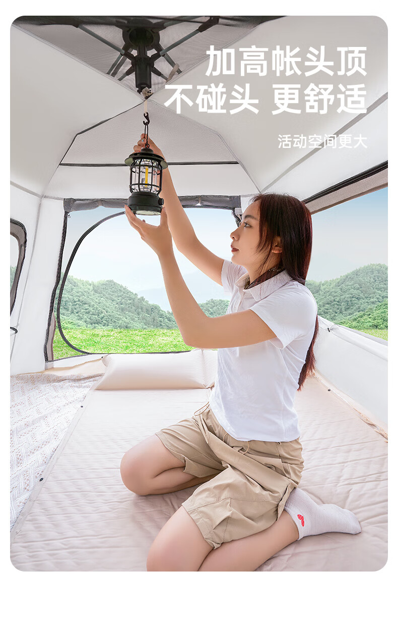 天蓬帐篷安装简单快捷方便,四面有纱窗不怕蚊子咬喽,里面空间很大,睡三个人没问题👍露营拿着非常便携,性价比超高非常感谢。