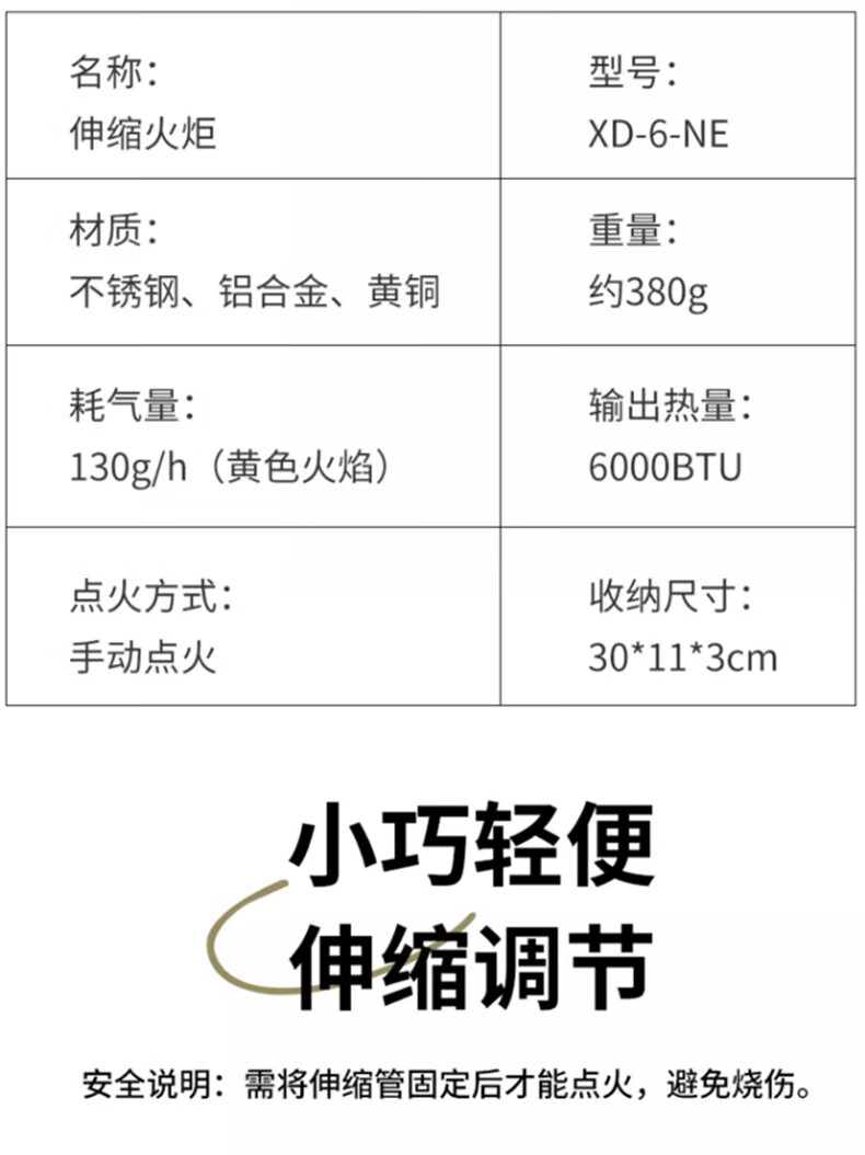 CAMPINGMOON柯曼伸缩火炬点火棒XD-6-NE户外生火烧烤引炭加长喷火枪 XD-6-NE伸缩火炬