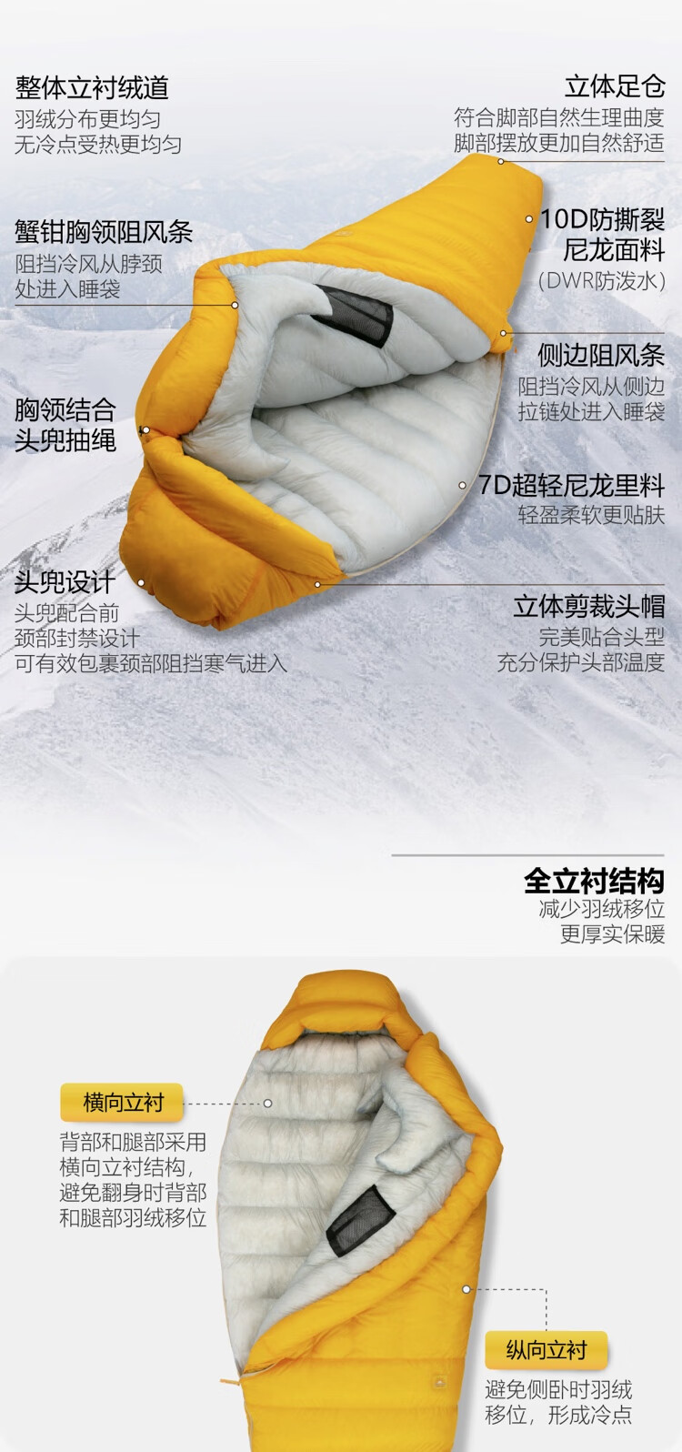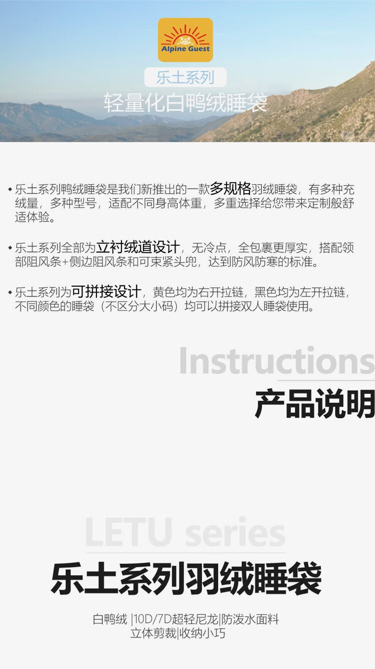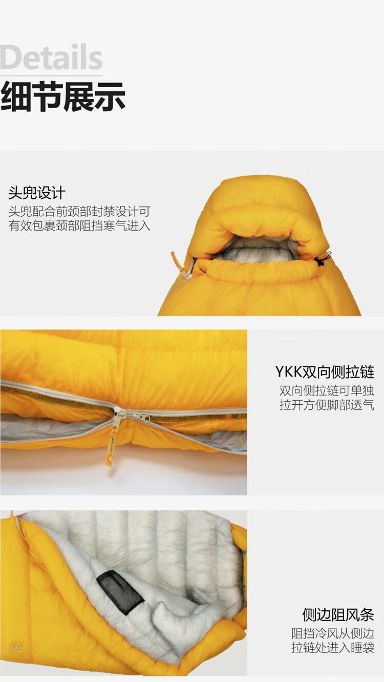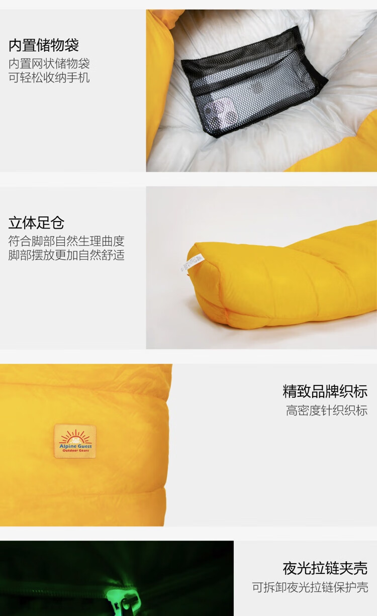 ALPINE GUESTAlpine Guest高山客乐土10d超轻成人 户外800+蓬白鸭绒羽绒睡袋 活力黄 乐土1200m码 中号210 80 适合 173-185 cm身