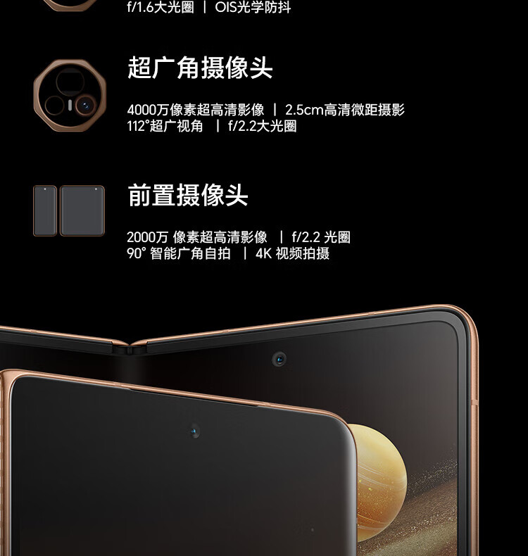 AI大模型,折叠屏,卫星通话,轻薄,LTPO屏幕,高频PWM调光,全焦段影像,潜望式长焦,无线充电,NFC,红外遥控,大底主摄