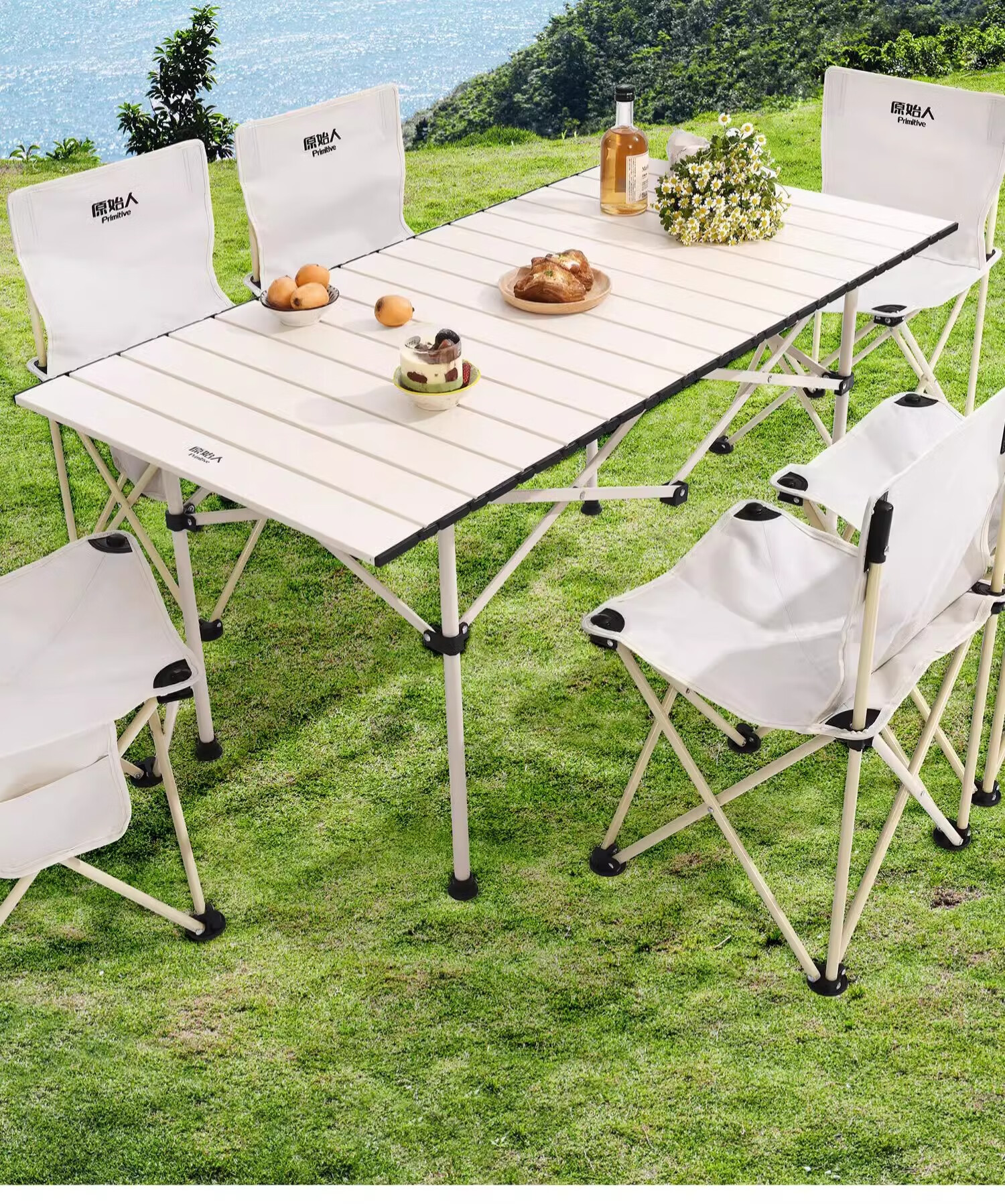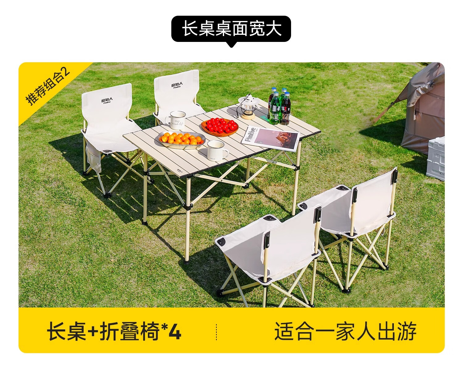原始人 户外折叠桌便携式露营桌子野餐桌椅套装野营用品装备蛋卷桌 黑长桌+6黑大号椅子+收纳包