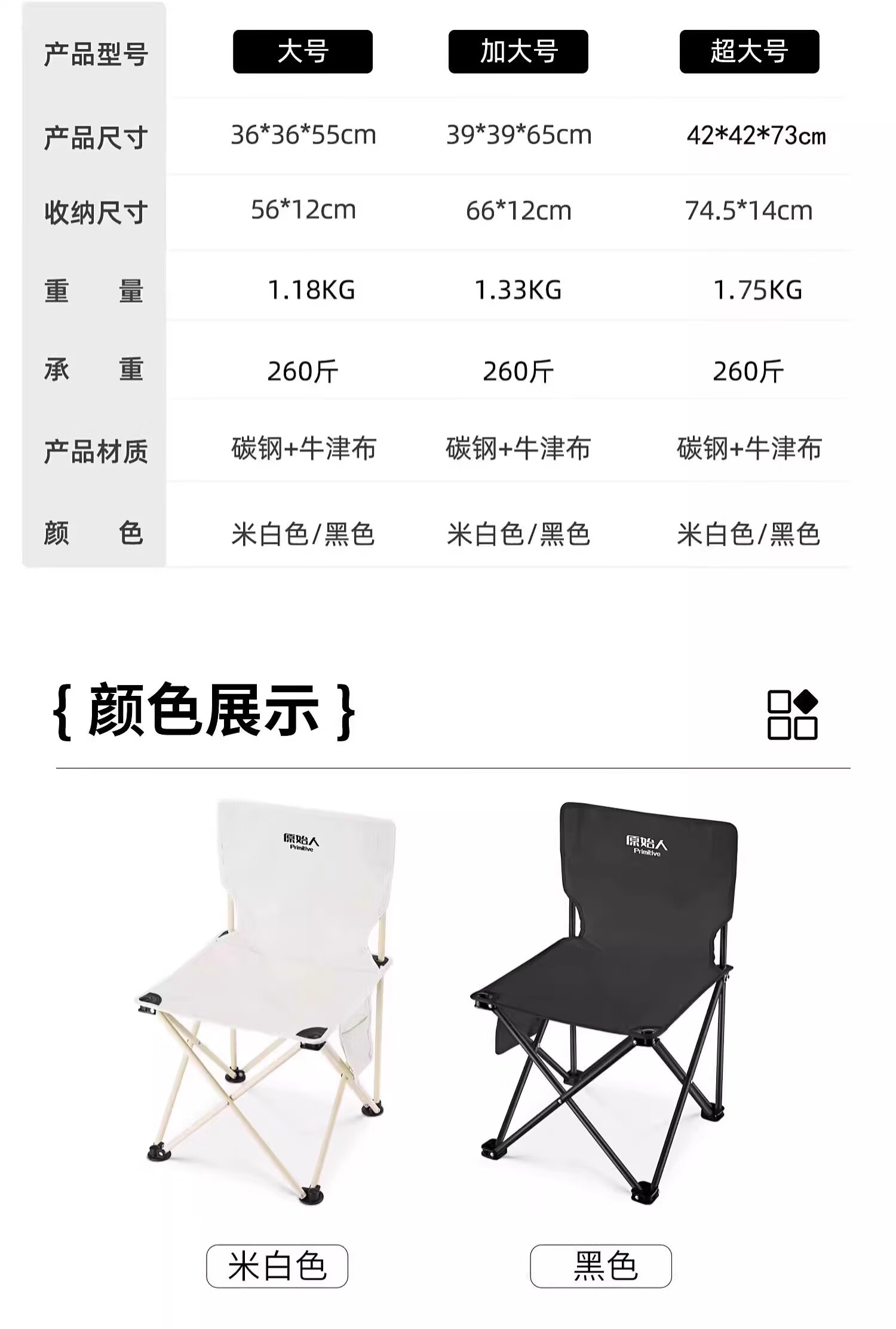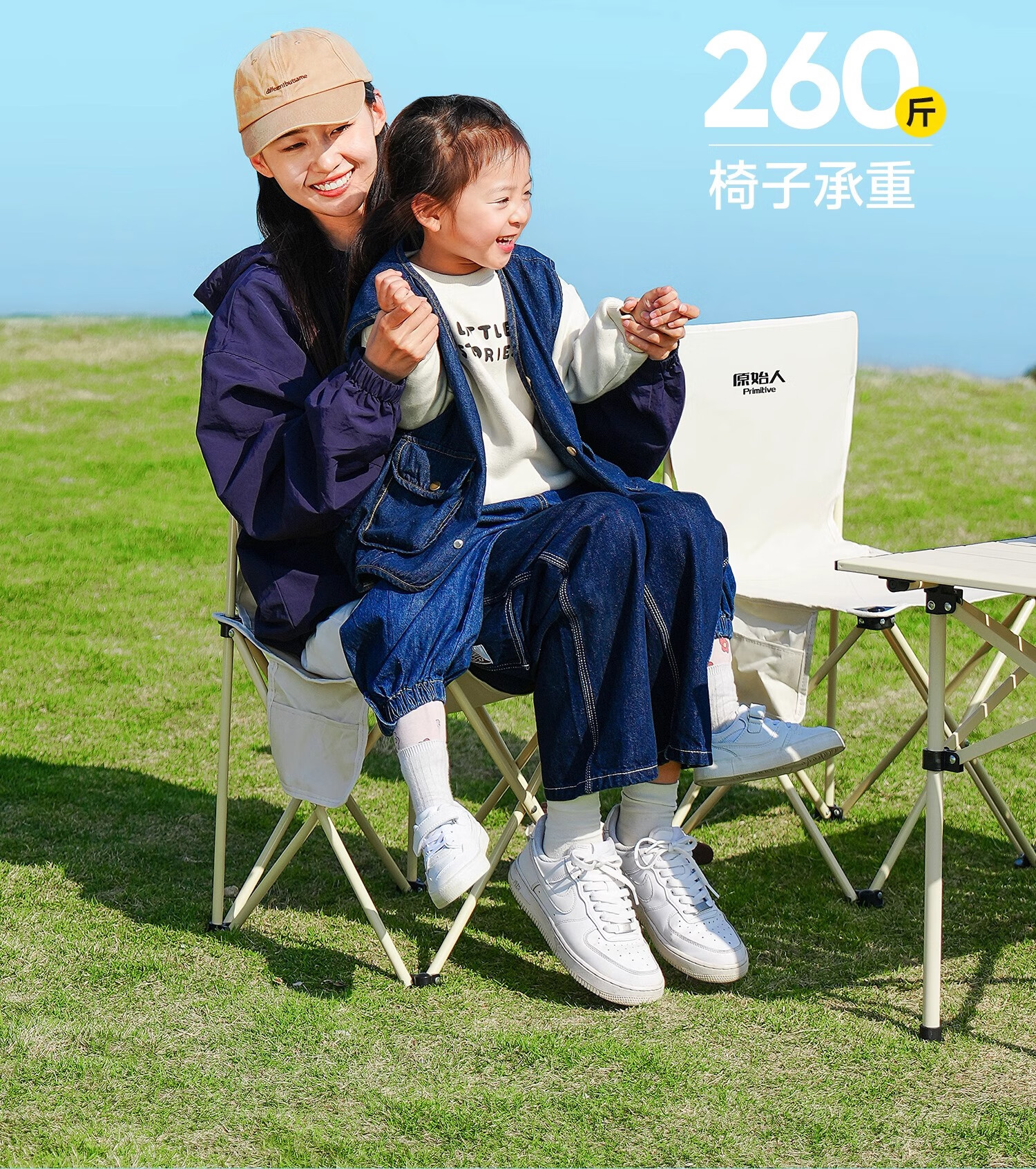 原始人(The Primitive)户外折叠椅露营椅子便携式野餐野外野营钓鱼写生小马扎凳子 卡其色加大号【双层椅面 赠收纳袋】