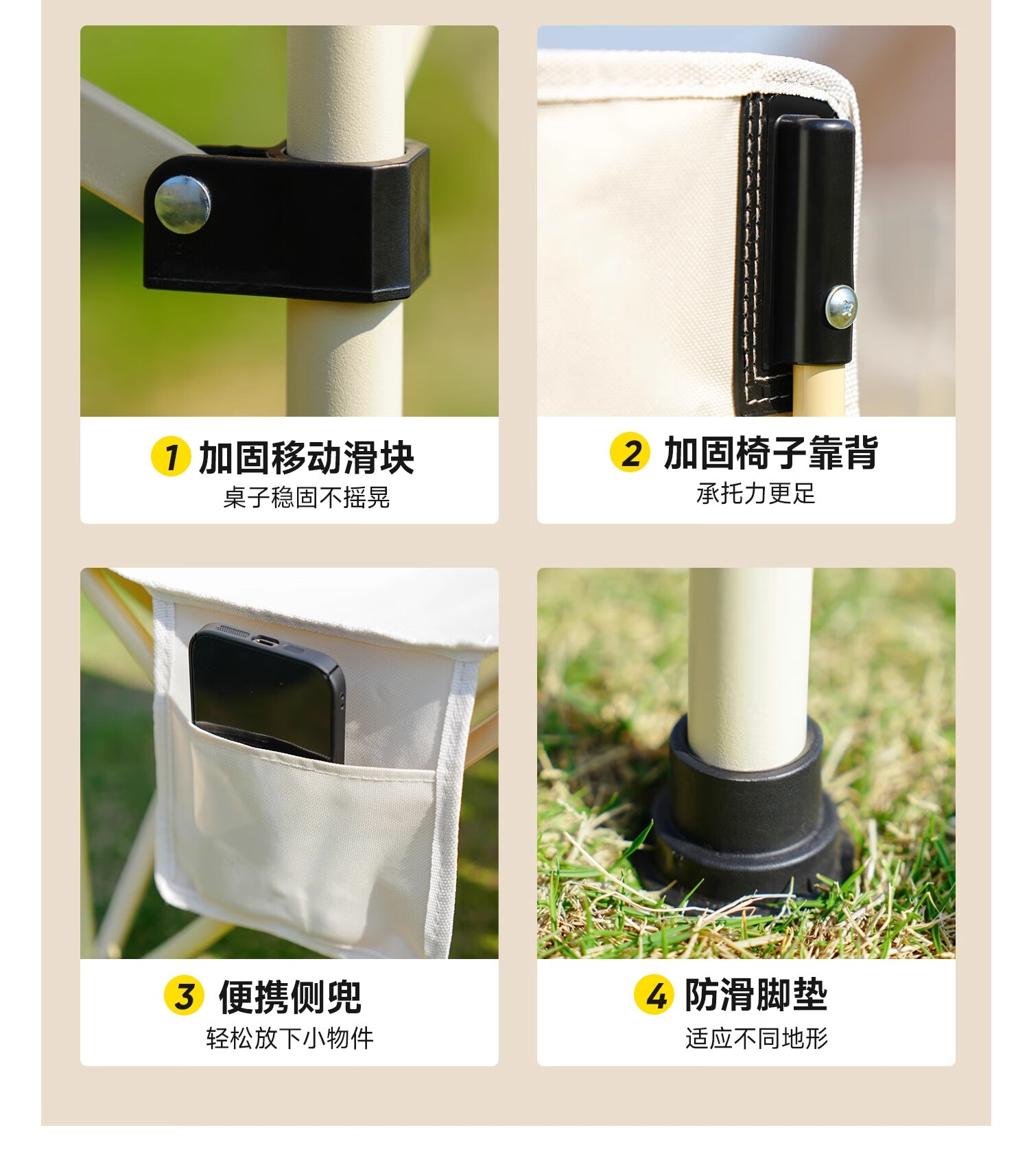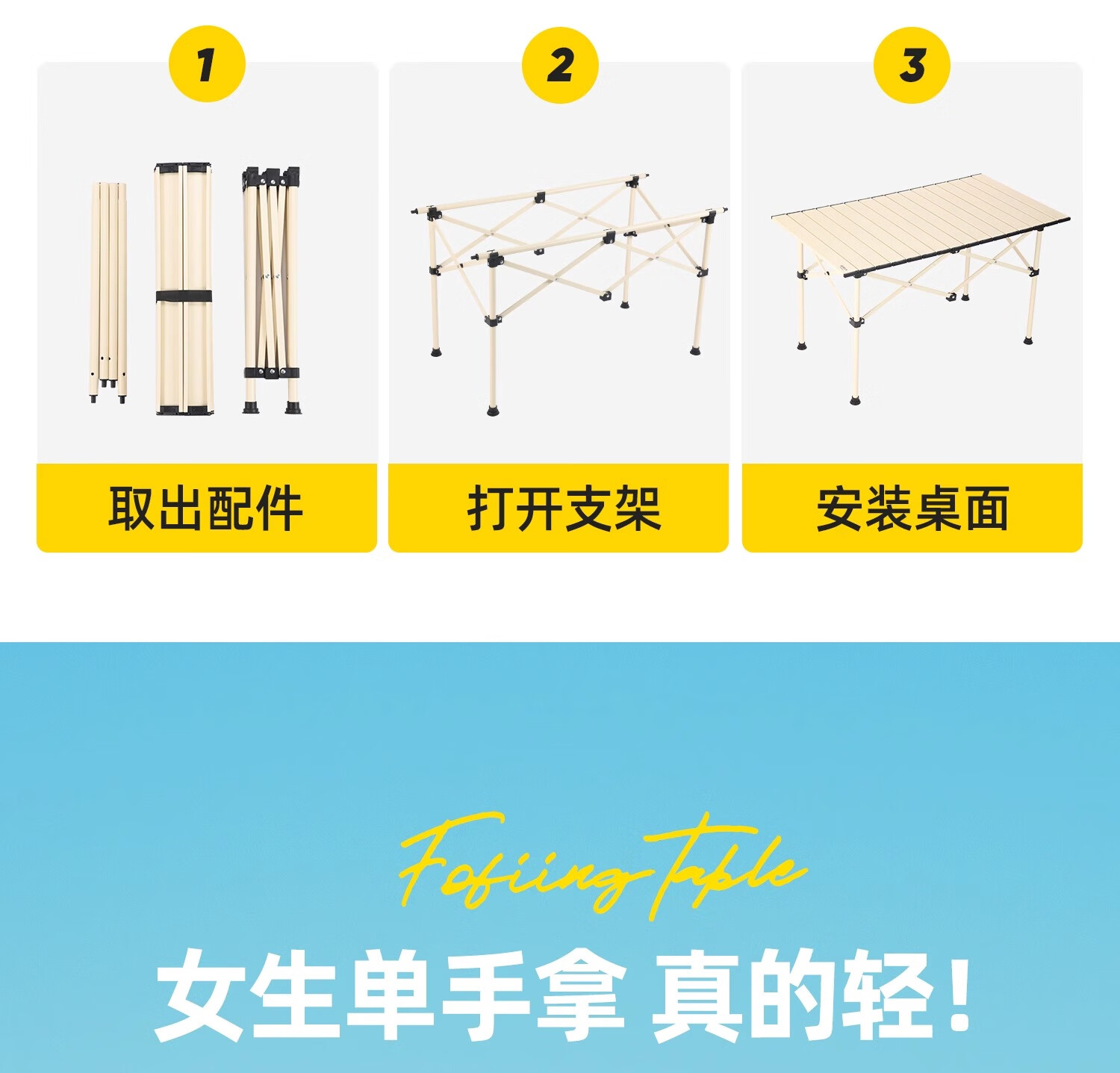 安装方便,桌子高度也适合,一个袋子装1个折叠桌,4把凳子刚刚好,还蛮有重量的,之后露营再也不担心装备不齐
