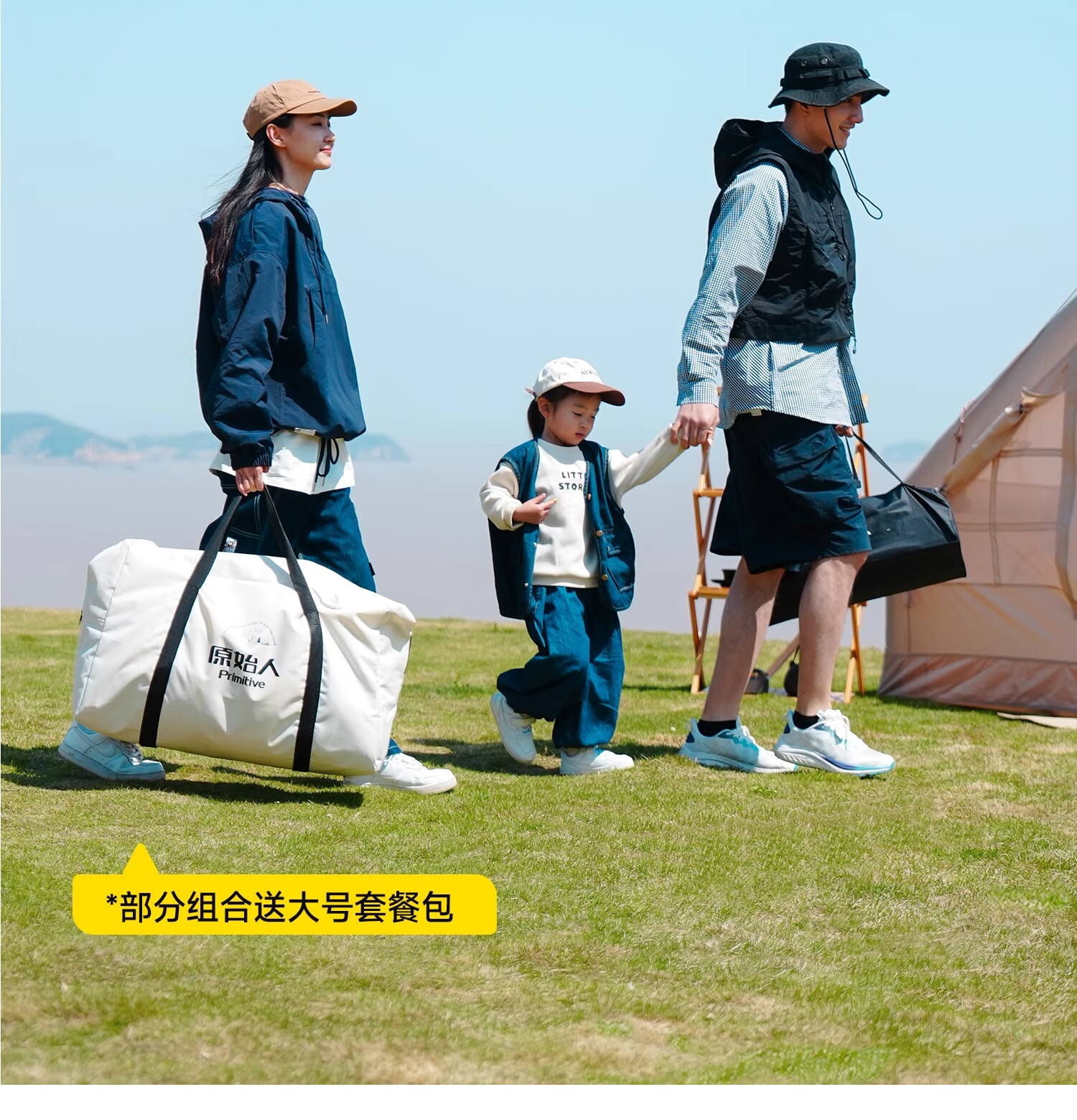 原始人帐篷户外折叠便携式野营过夜露营加厚防雨防晒黑胶装备全套 钛黑胶款加大号【充气垫套装】