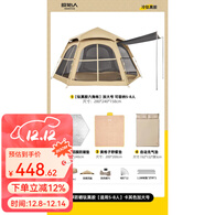 原始人天幕帐篷户外桌椅遮阳防晒防雨便携露营黑胶野营棚新型野餐大蝶形 22㎡经典绿白【全遮光钛黑胶】