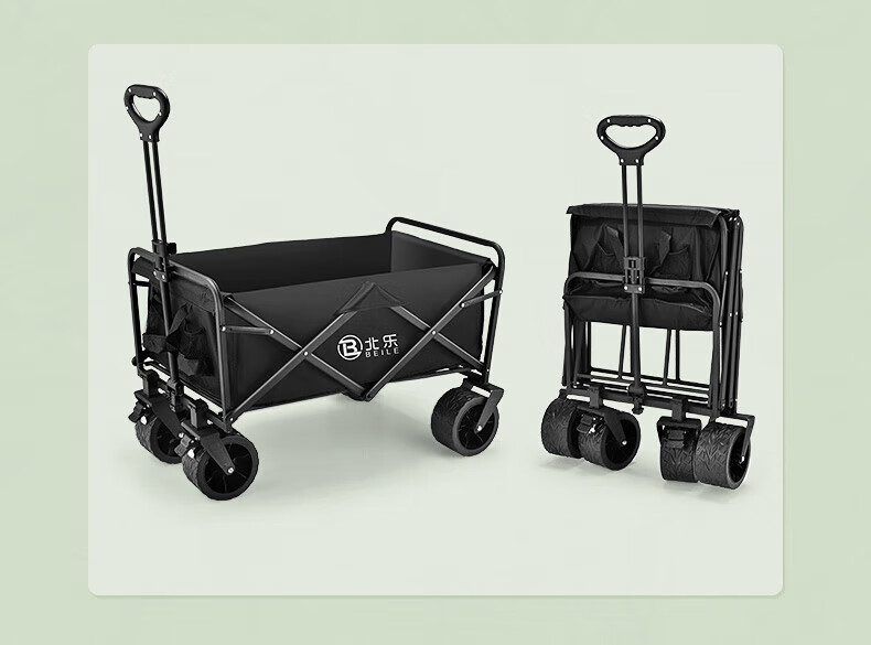 北乐户外露营可折叠小推车野餐车营地车聚拢野营拖车摆摊快递买菜拉车 黑色 80L 无刹车 -迷你款